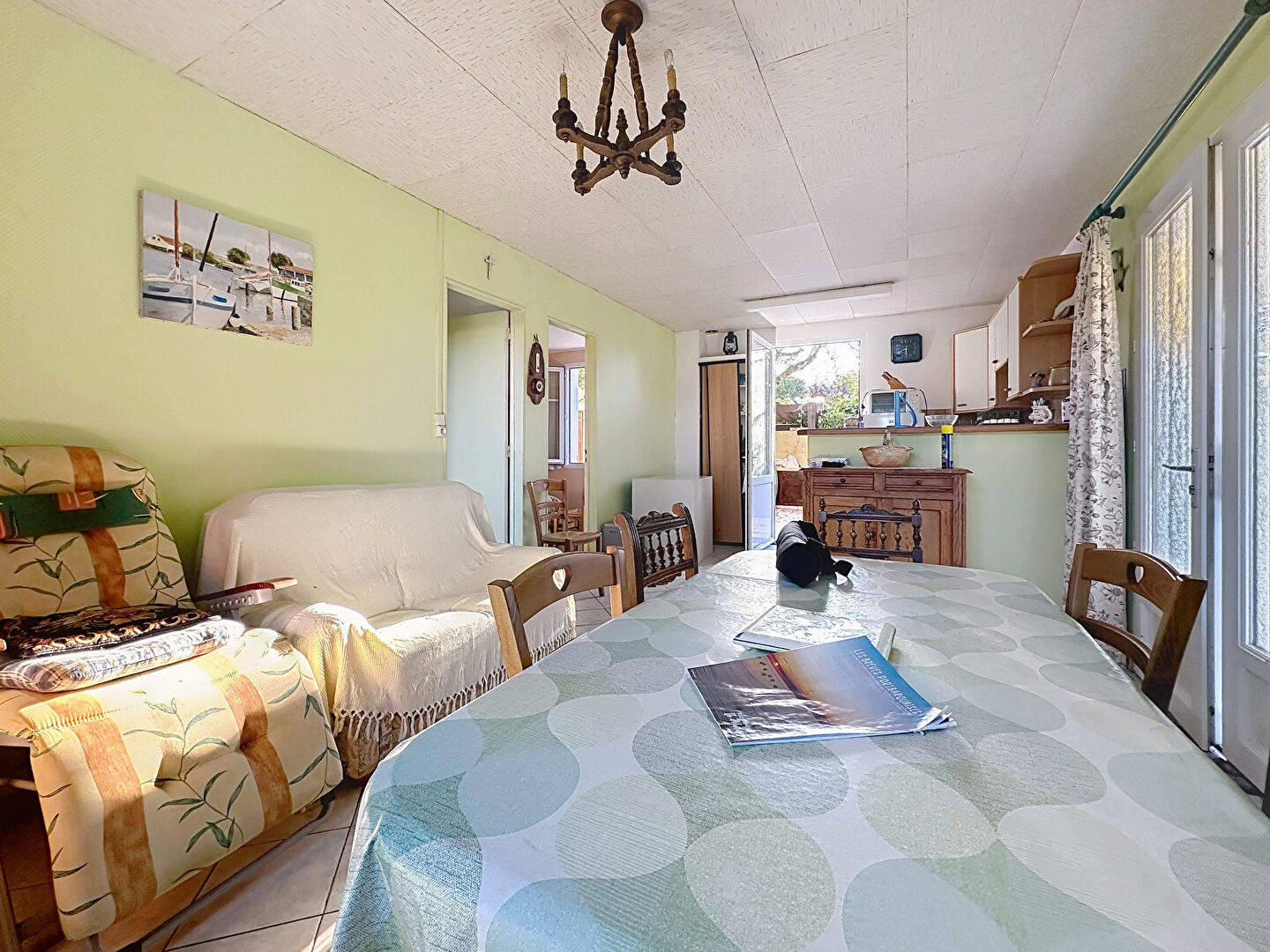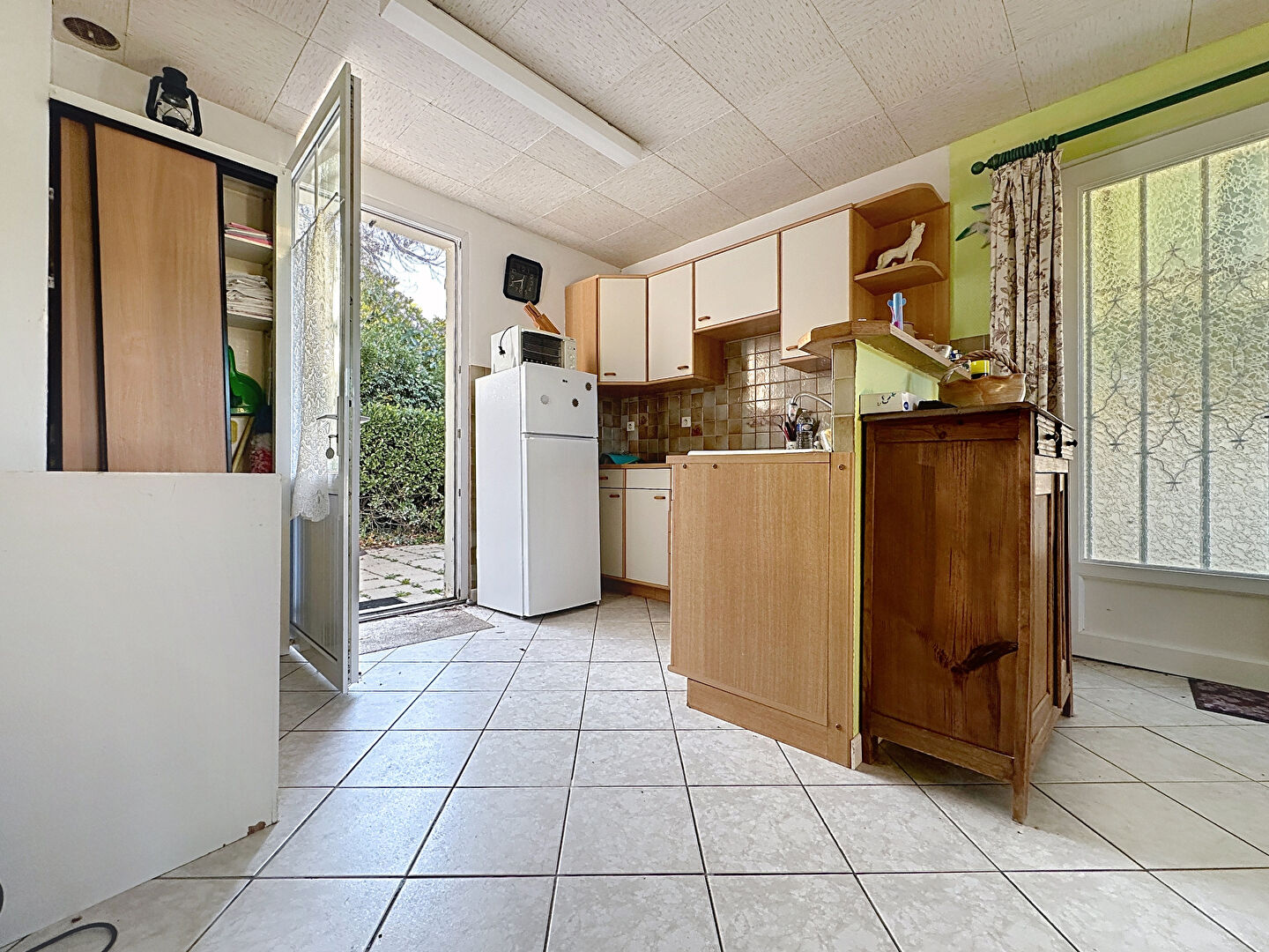 Beau séjour traversant, ouvrant sur jardin et terrasse. 3 chambres, de 9 à 16 m² salle d'eau, wc indépendant. Buanderie et dépendance.