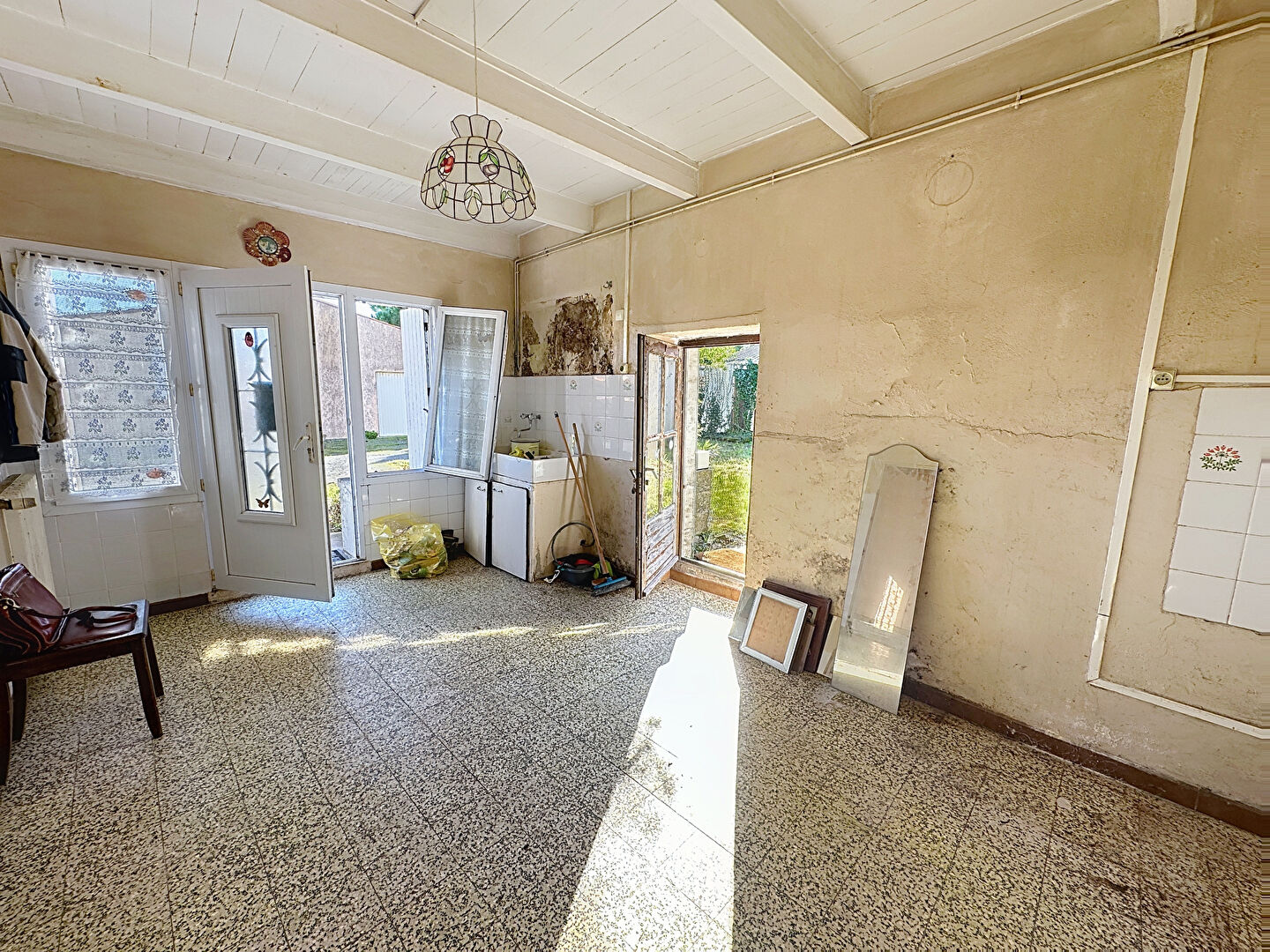 - au rez-de-chaussée : une cuisine, salon, un dégagement donnant sur une chambre et une salle d'eau avec WC