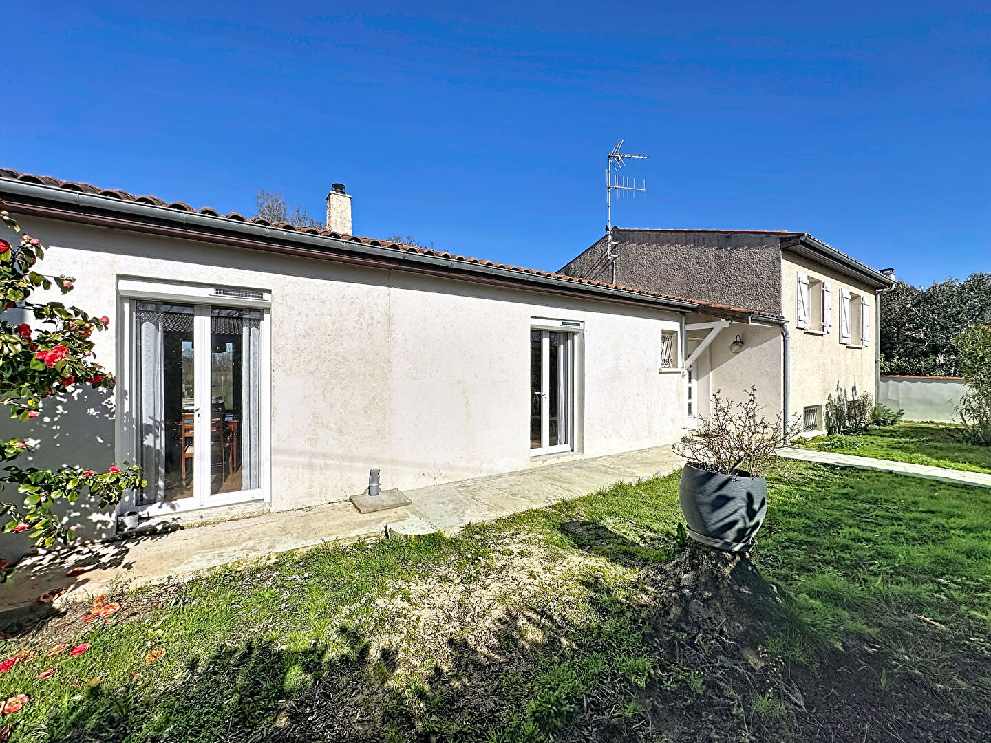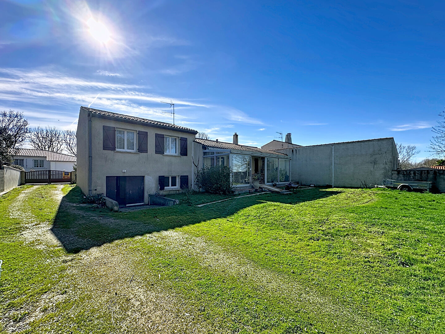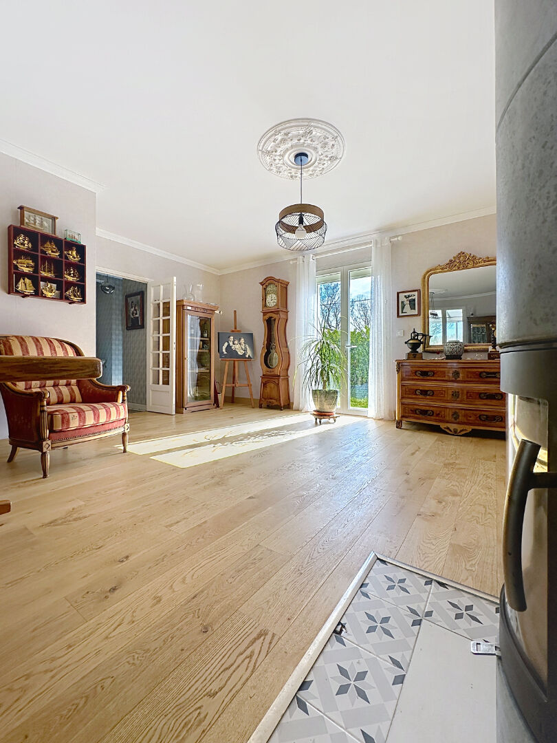 Sur une belle parcelle de 1000 m², cette maison rénovée se compose d'une entrée, séjour de 63 m² traversant, cuisine indépendante équipée, WC, 5 chambres, salle d'eau avec WC, buanderie.