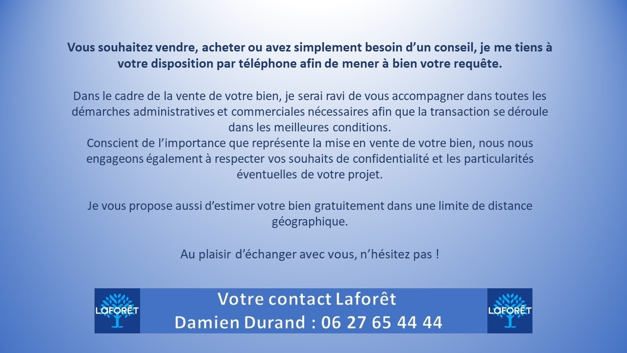 Votre contact Laforêt : Damien Durand : 06 27 65 44 44
