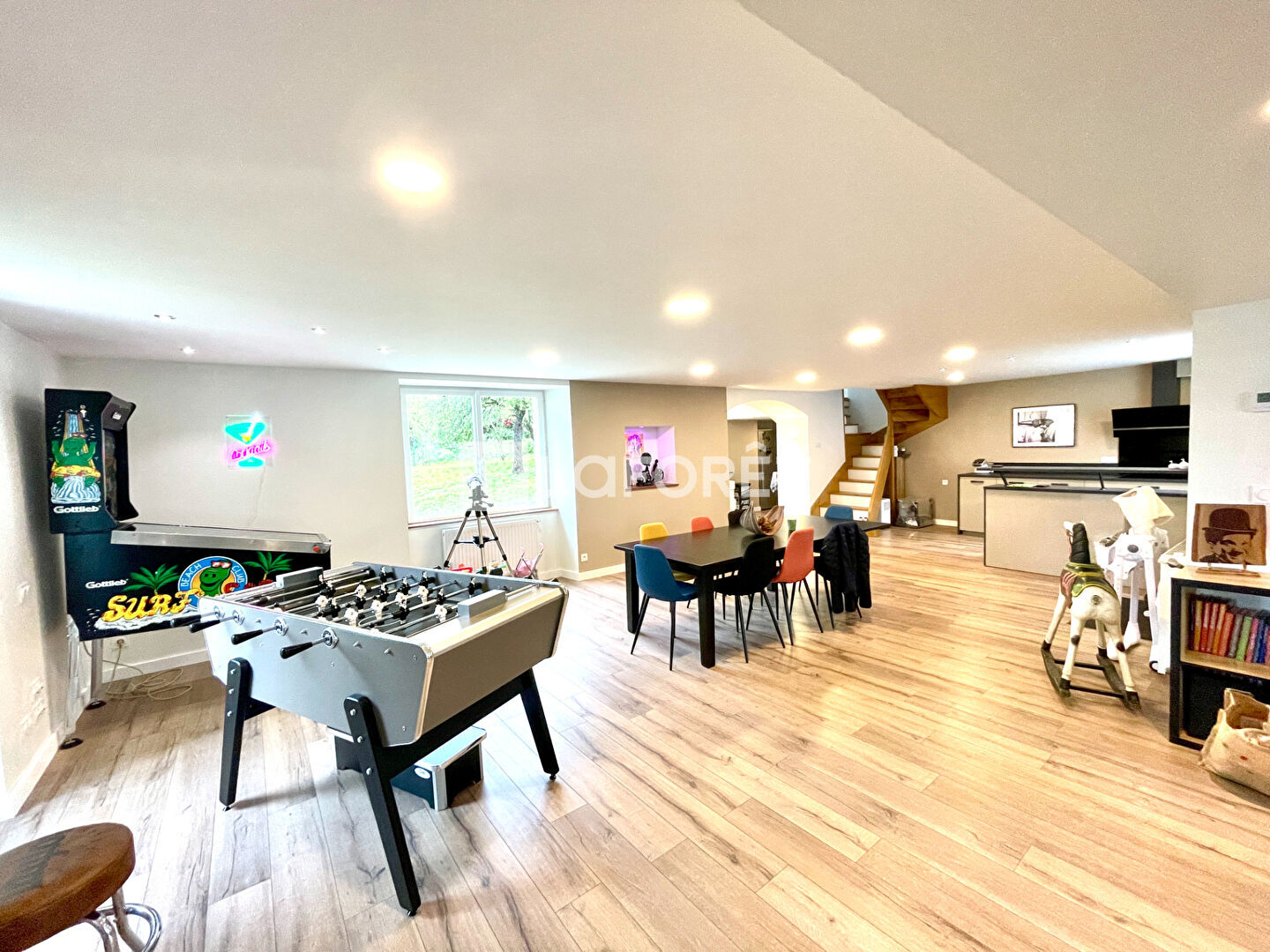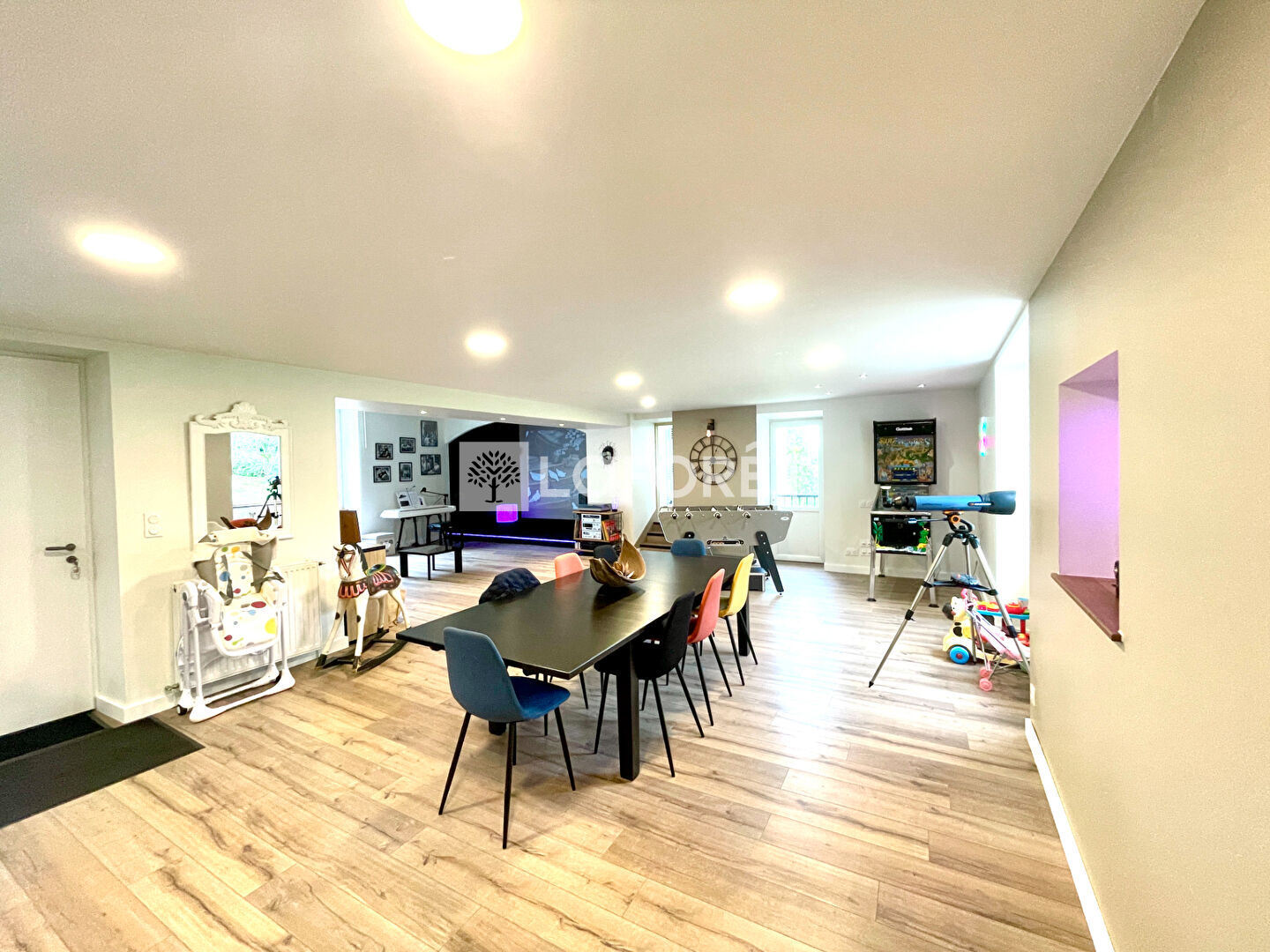 Une pièce de vie de 110 m² avec cuisine, espace repas et salon/salle de vidéo projection, cinq magnifiques chambres dont une suite parentale, un bureau, des combles aménagés, un local/appartement en sous sol, une grande cave... Le tout sur un terrain plat et arboré de plus de 1100 m² avec une charmante petite grange en pierre aménageable sur deux niveaux.