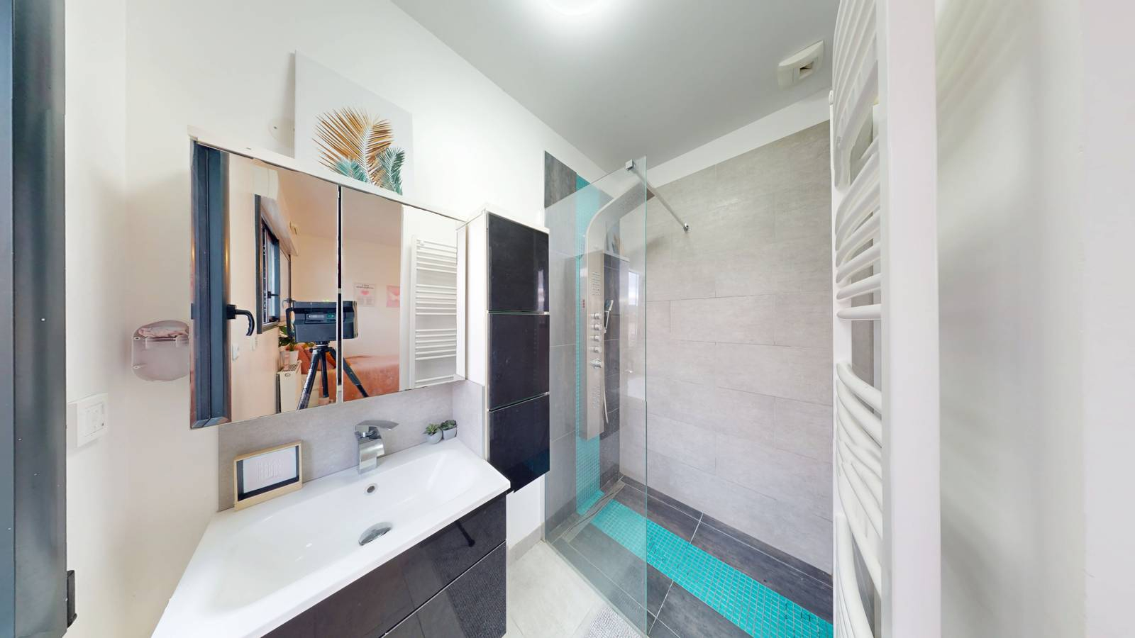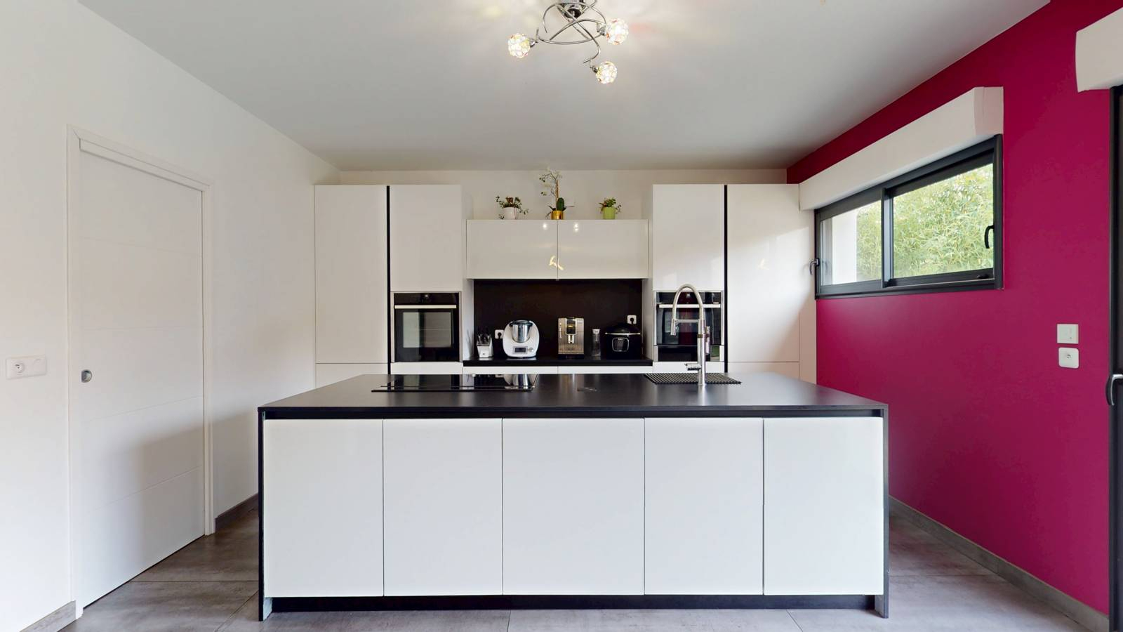 Au rez-de-chaussée, de vastes espaces de vie accueillent un salon et une salle à manger aux lignes épurées, prolongés par une cuisine américaine entièrement aménagée et équipée. Dans la continuité, une suite parentale pensée comme un véritable espace privé offre dressing sur mesure et salle de bains raffinée avec balnéothérapie, douche et WC séparé.