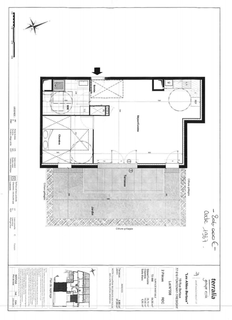rez-de-chaussée avec jardin privatif et place de parking. D'une surface d'environ 55 m², ce bien se compose de : Une belle pièce