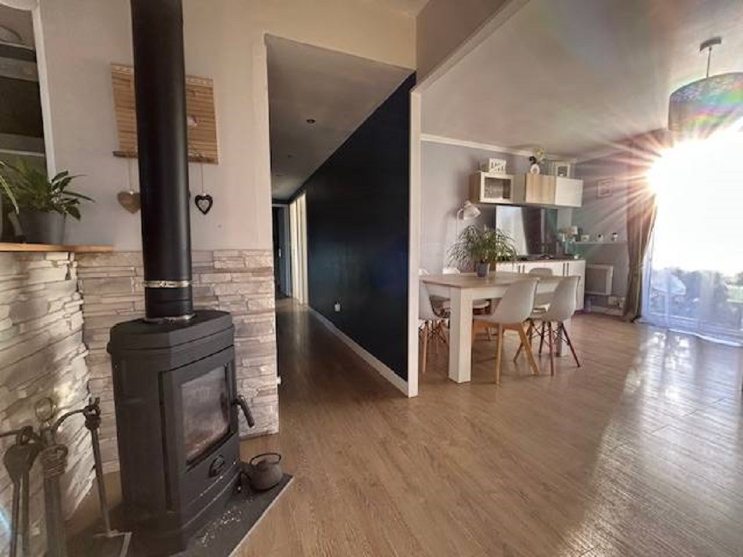 Édifiée sur un terrain clos de 493 m², elle se compose d'une entrée,une cuisine aménagée et équipée, ouverte sur un séjour lumineux avec poêle,un dégagement desservant 4 chambres avec rangements, une salle de bains,un WC indépendant,