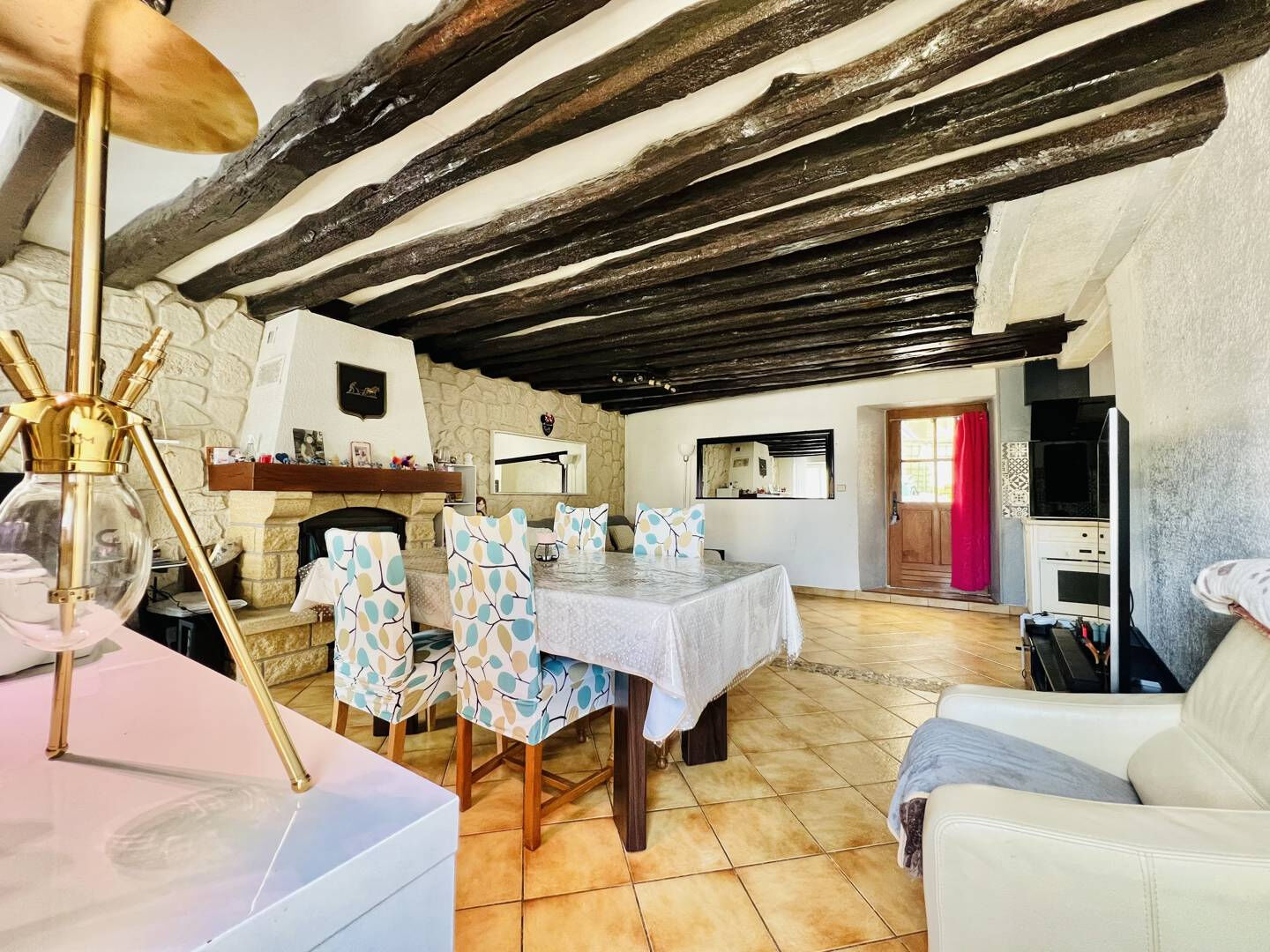 Coté intérieur, vous accéderez au rez-de-chaussée du logement par une jolie véranda et disposerez d'une cuisine équipée ouverte sur un bel espace séjour traversant avec cheminée, un dégagement avec placard, une chambre ainsi qu'une salle de bain fonctionnelle.