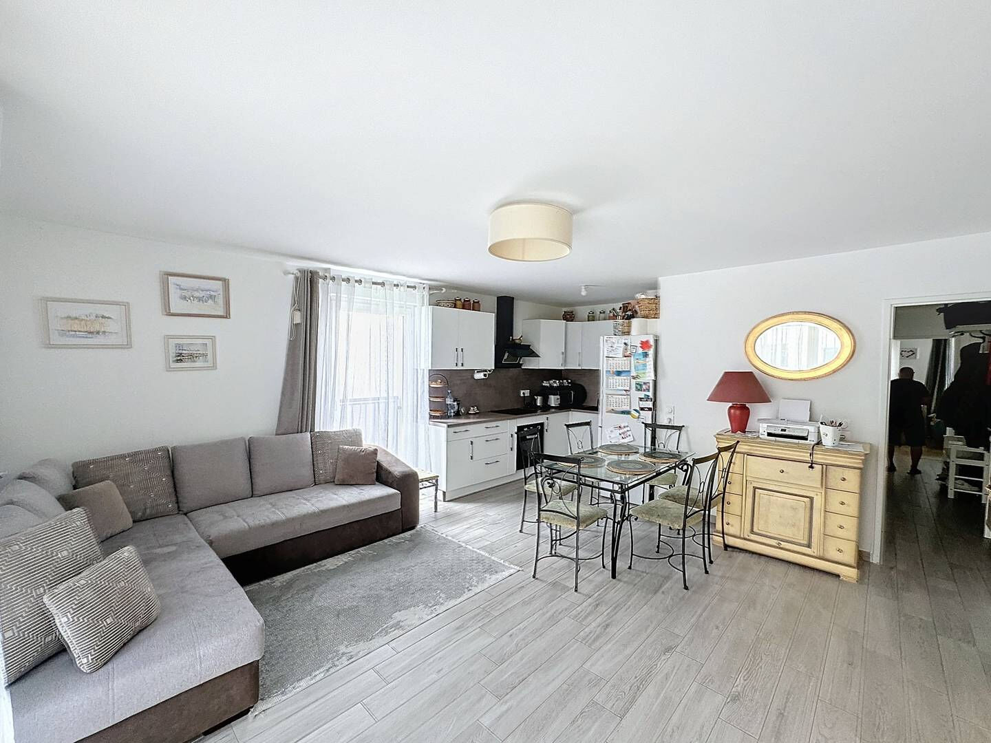 Une entrée, un double séjour donnant sur balcon, une cuisine US aménagée et équipée, un dégagement, 3 chambres, une salle de bains, une salle d'eau, un wc, le tout avec un parking privatif en sous-sol.