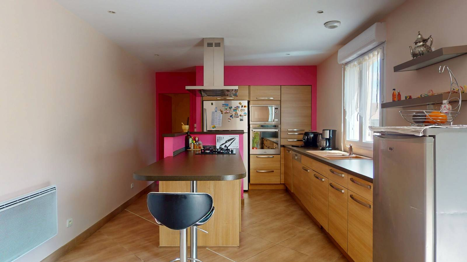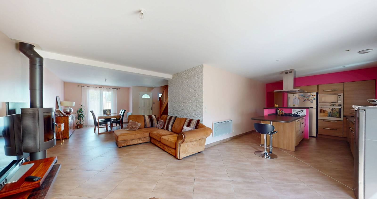 Au rez-de-chaussée une entrée desservant un bel espace de vie de plus de 41m² aux volumes généreux et lumineux, une cuisine américaine aménagée et équipée, une buanderie, une chambre, une salle d'eau et un WC séparé.