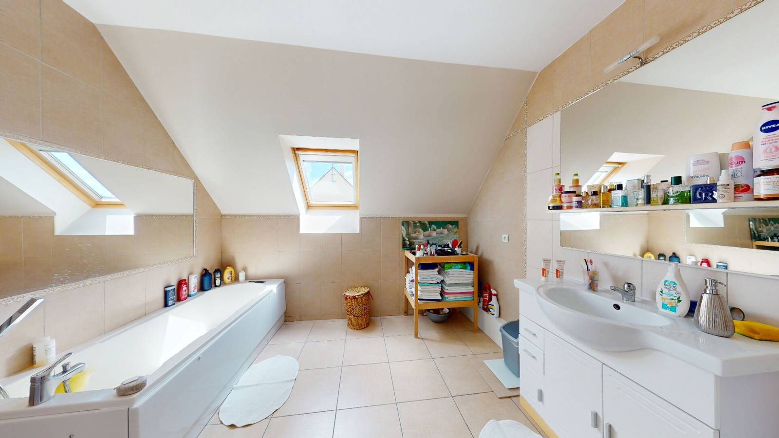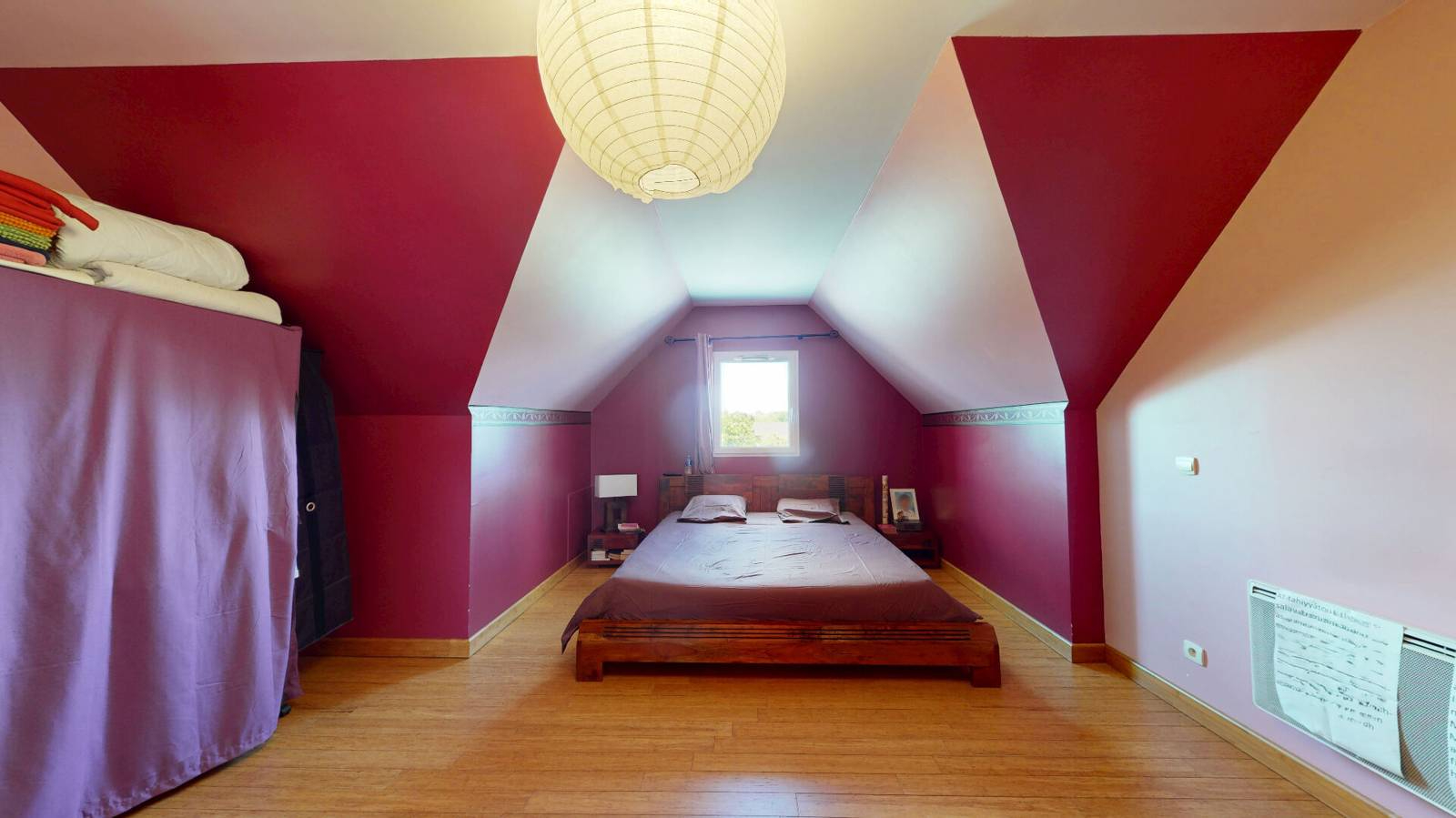 Au 1er étage un palier desservant 2 grandes chambres, une salle de bains, un WC, et une suite parentale avec salle de bains à aménager selon vos goûts.