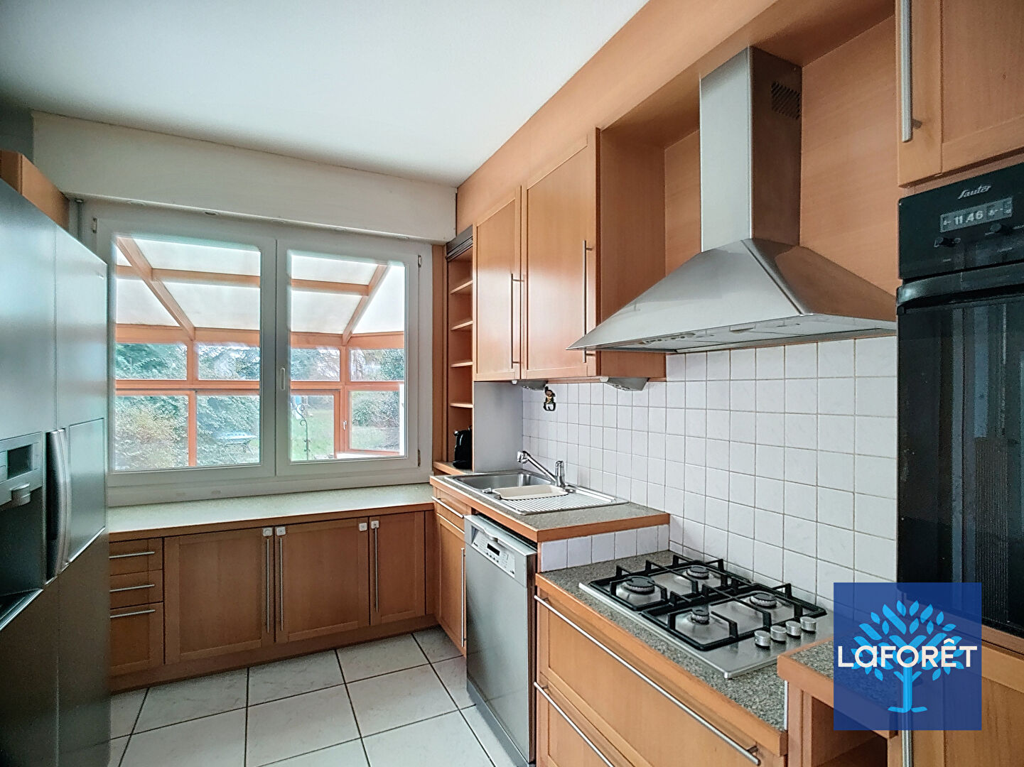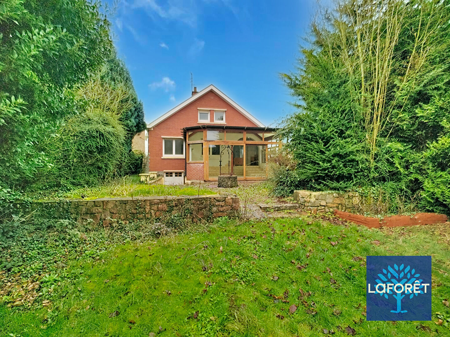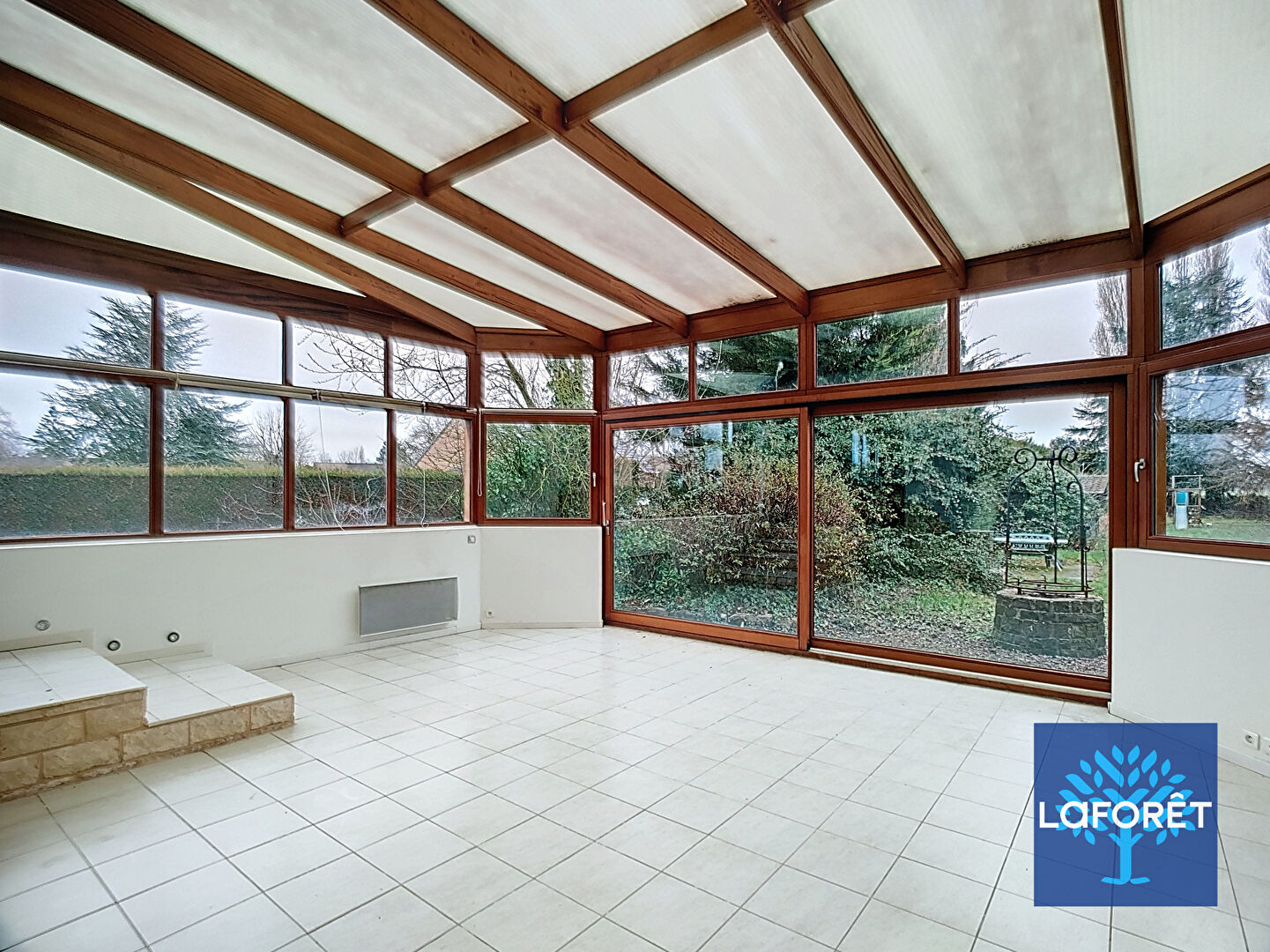 Au rez-de-chaussée, vous découvrirez une entrée avec vestiaire, un salon/séjour lumineux, une cuisine équipée, deux chambres, une salle de bains ainsi qu'un WC indépendant. Une grande véranda prolonge l'espace de vie et offre une vue agréable sur un magnifique jardin arboré, sans vis-à-vis.