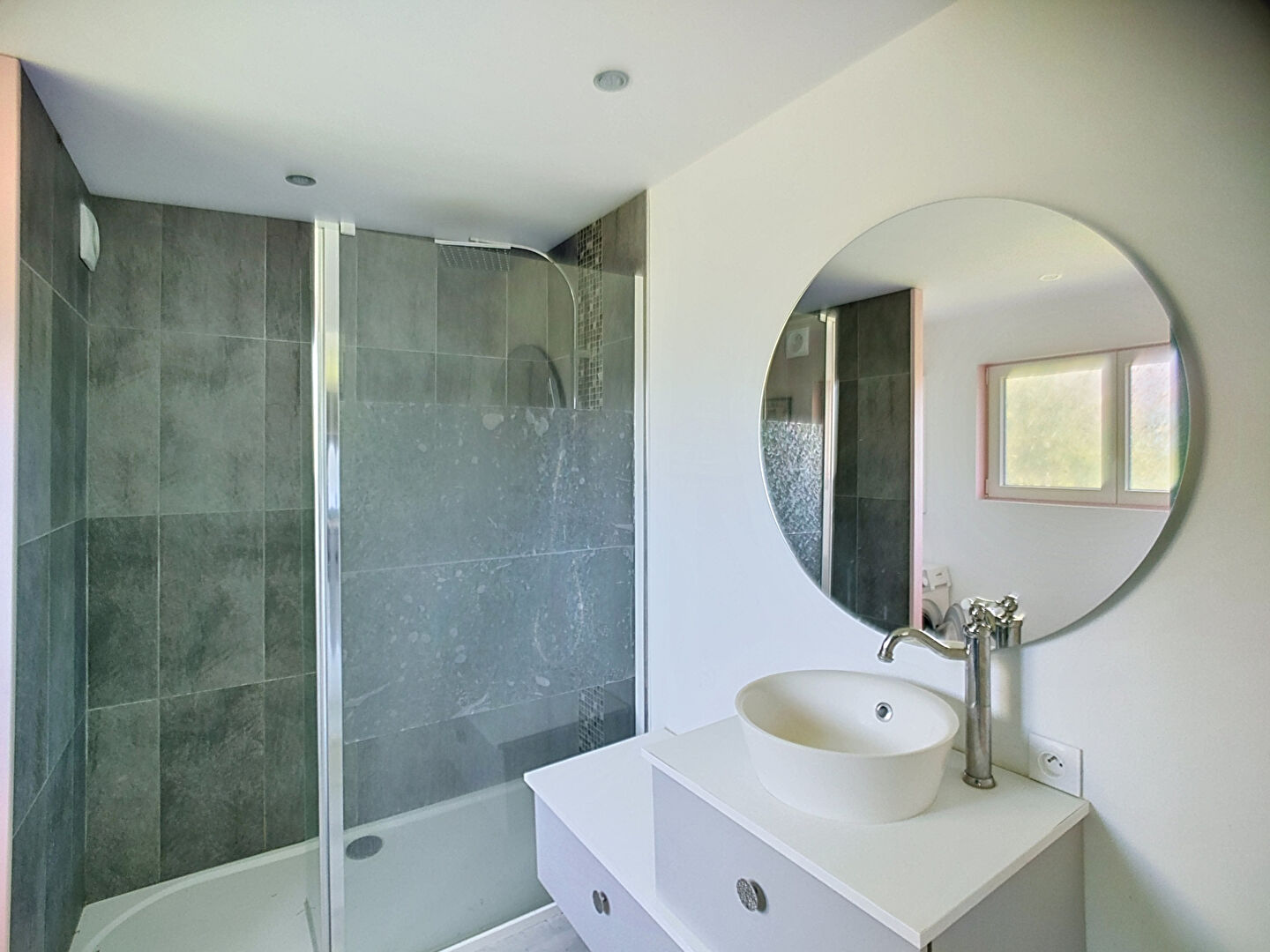 Dès l'entrée, vous découvrirez un agréable salon/séjour ouvert sur une cuisine récente, entièrement équipée, offrant un espace de vie convivial. Une salle de douche, entièrement refaite, complète le rez-de-chaussée.