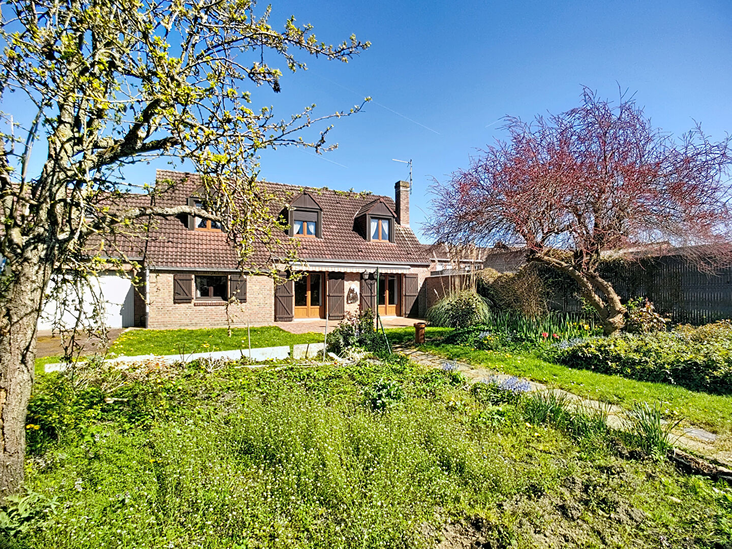 Côté extérieur et annexes, vous bénéficierez d'un grand garage avec combles de stockage ainsi que de trois places de stationnement privatives.
