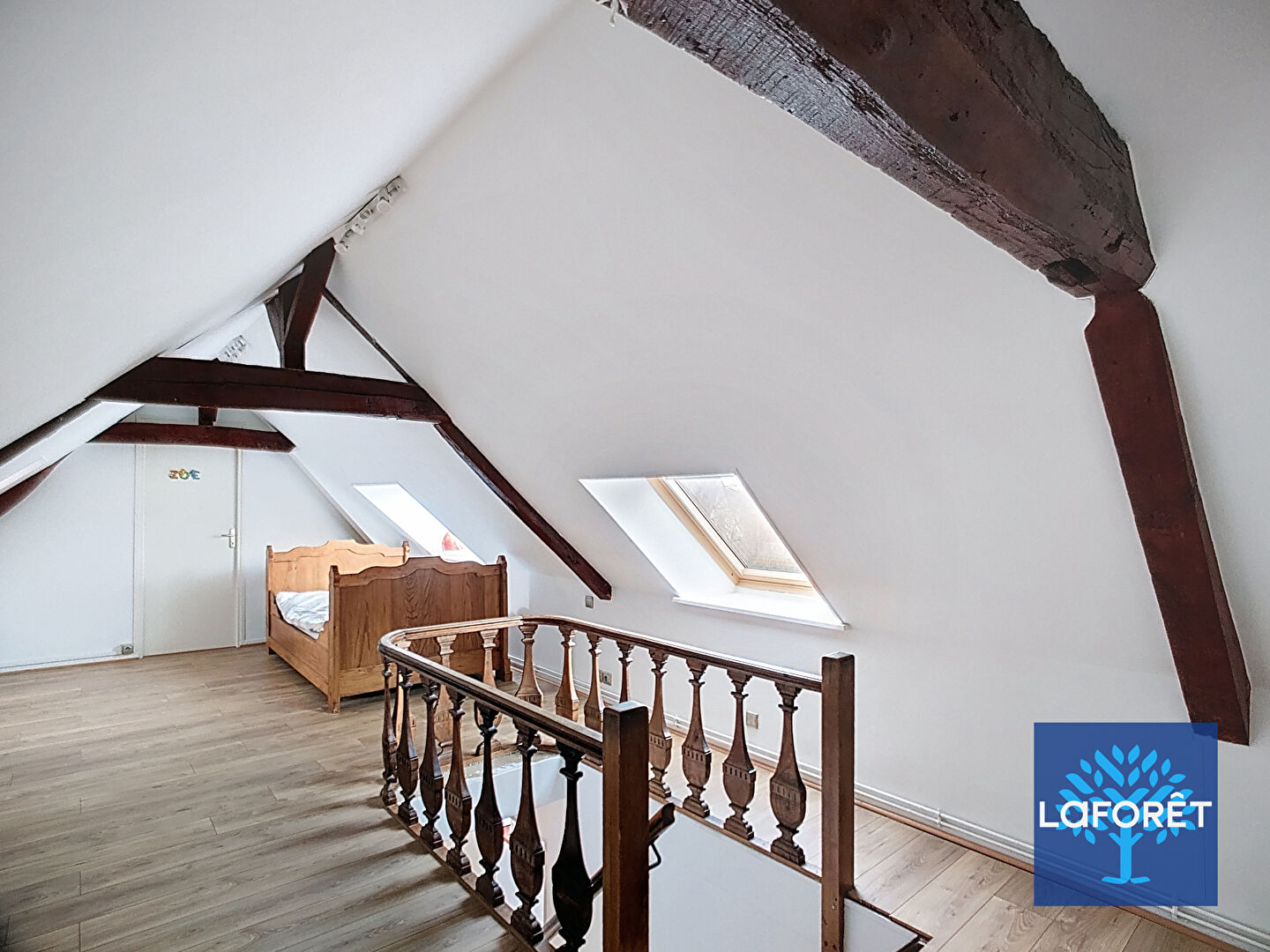 Le deuxième étage propose un grand palier menant à deux chambres supplémentaires, dont une avec salle de douches.