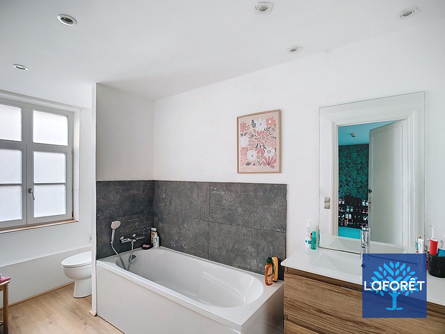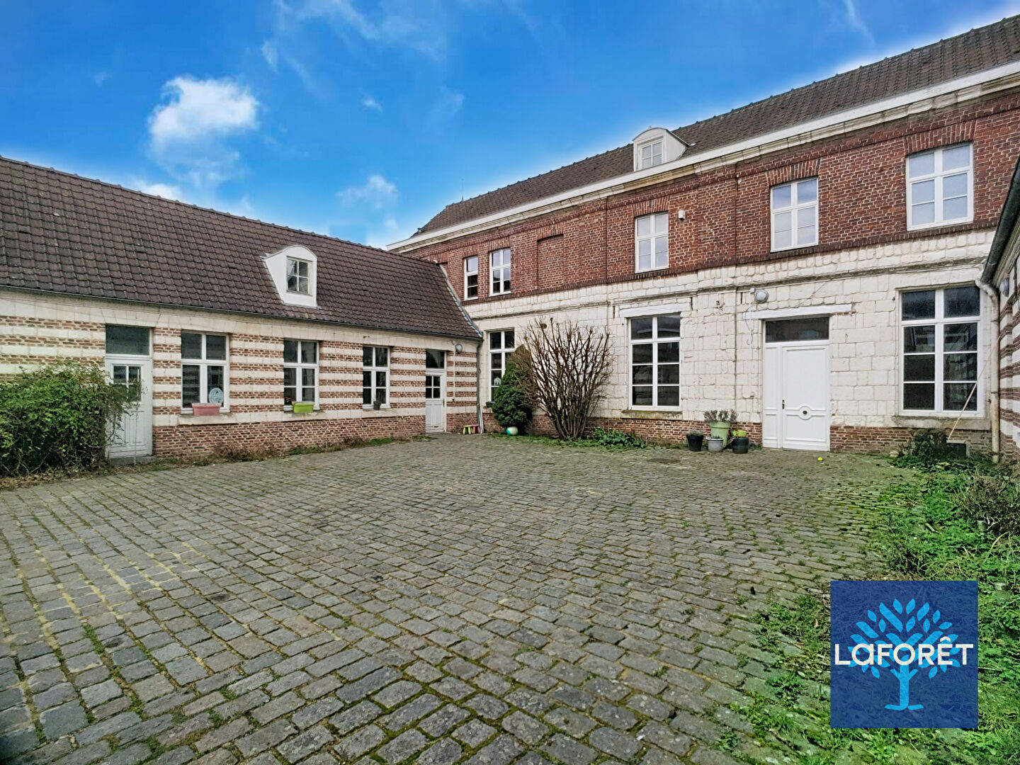 Nichée à l'abri des regards, derrière une vaste cour pavée, cette élégante maison familiale séduit par ses beaux volumes et son cachet préservé.