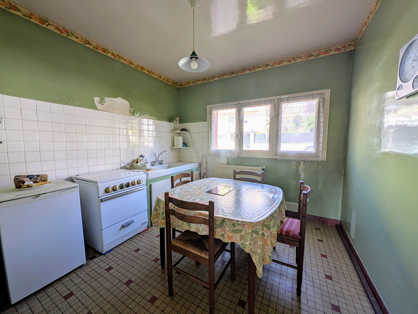 Elle se compose au rez-de chaussée d'une entrée, d'une chambre, d'une buanderie et d'un grand garage. A l'étage se trouve un séjour, deux chambres, une salle d'eau, une cuisine et un WC séparé.
