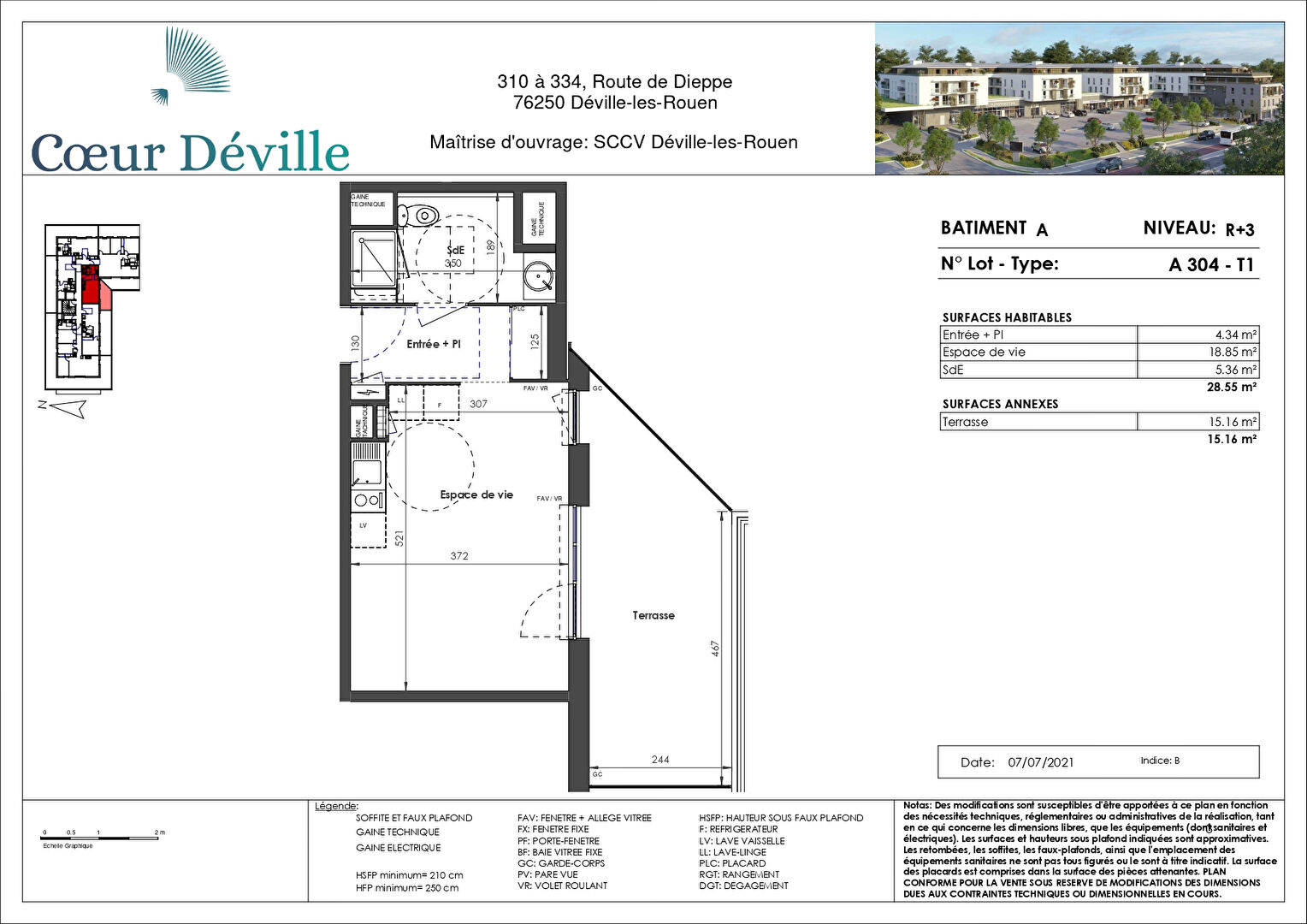 Nous vous proposons à l'achat cet appartement T1 dans la nouvelle résidence "COEUR DEVILLE". Ce T1 est exposé sud avec terrasse de 15.16m². Il se compose d'une entrée avec placard, une pièce principale et salle d'eau. LIVRAISON FIN SEPTEMBRE. Egalement vendu avec l'appartement un emplacement de PARKING couvert.