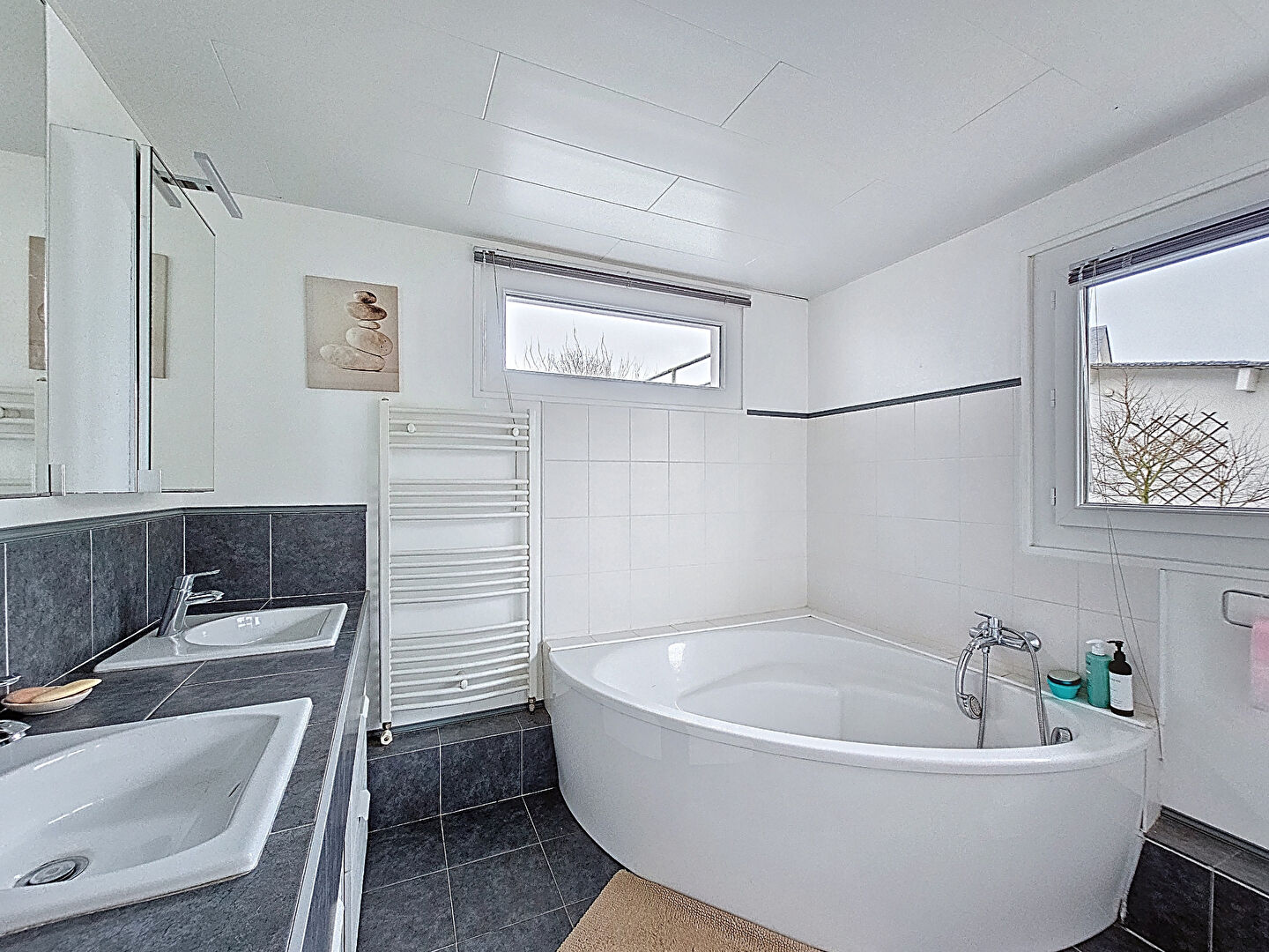 À l'étage, la maison offre quatre chambres, dont une suite parentale, ainsi qu'un grenier aménagé en salle de jeux.