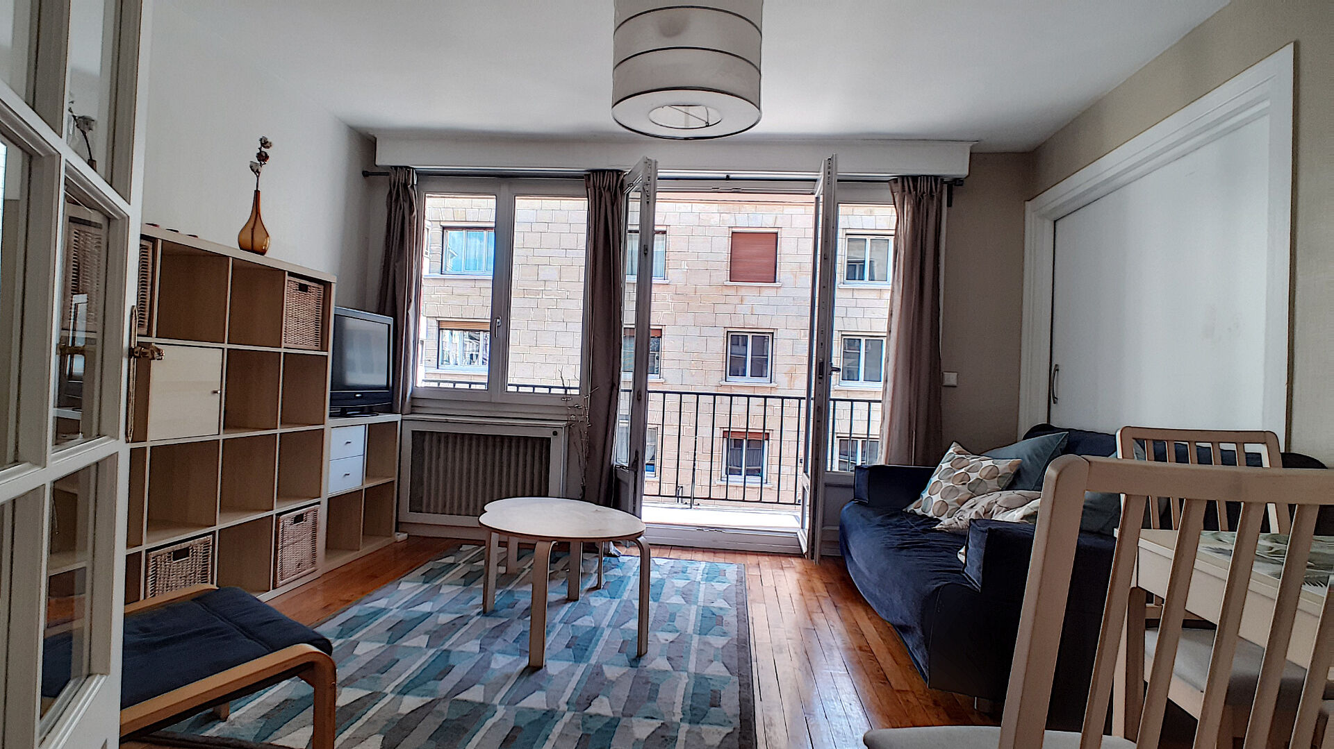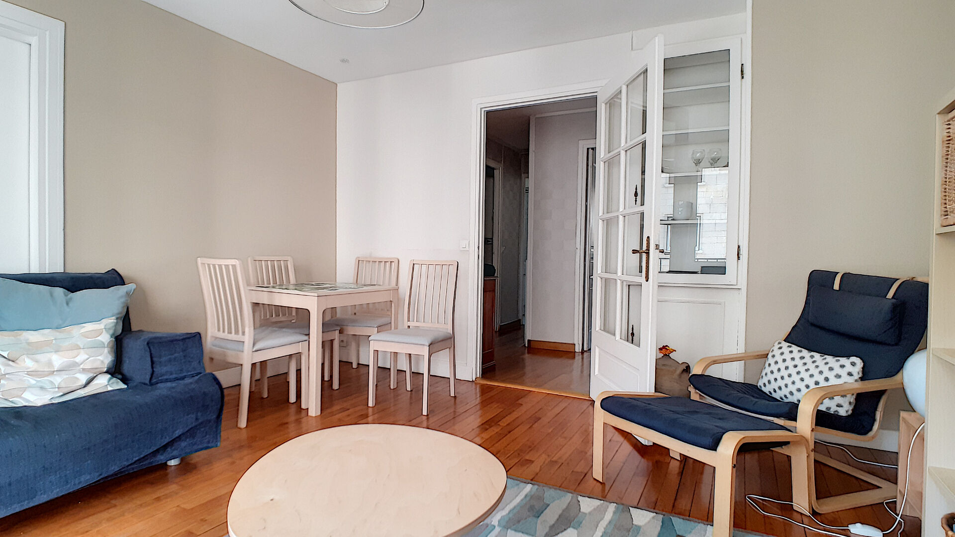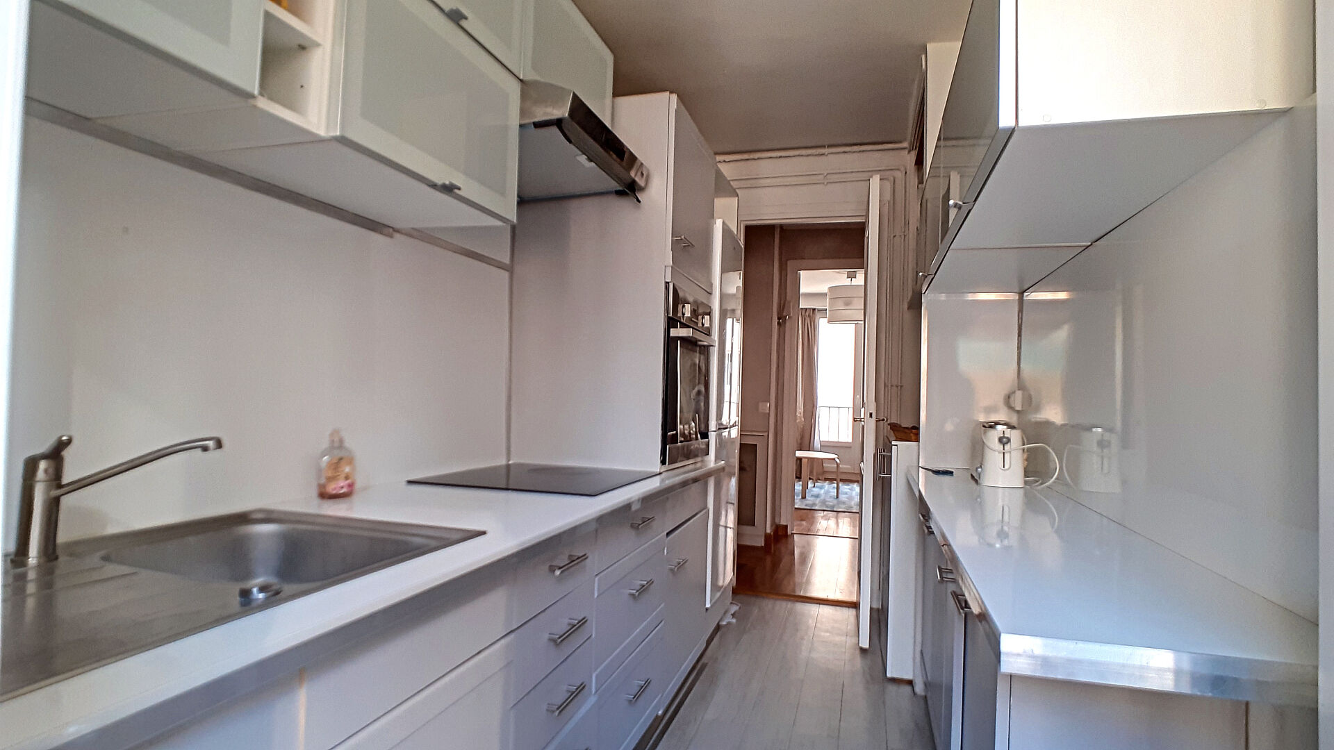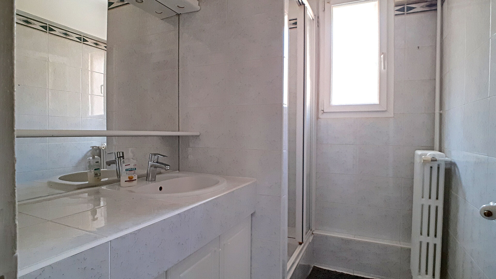 Il se situe au deuxième étage d'un immeuble de bon standing. Ce dernier est équipé d'un ascenseur. Le bâtiment est équipé d'un interphone. Un gardien est aussi présent. Il propose un grand séjour/salon avec un accès balcon, deux chambres avec placards et une cuisine aménagée et équipée avec un accès balcon (four, plaque de cuisson, hotte, réfrigérateur, machine à laver et sèche linge) ainsi qu'une salle de bain. WC séparé.