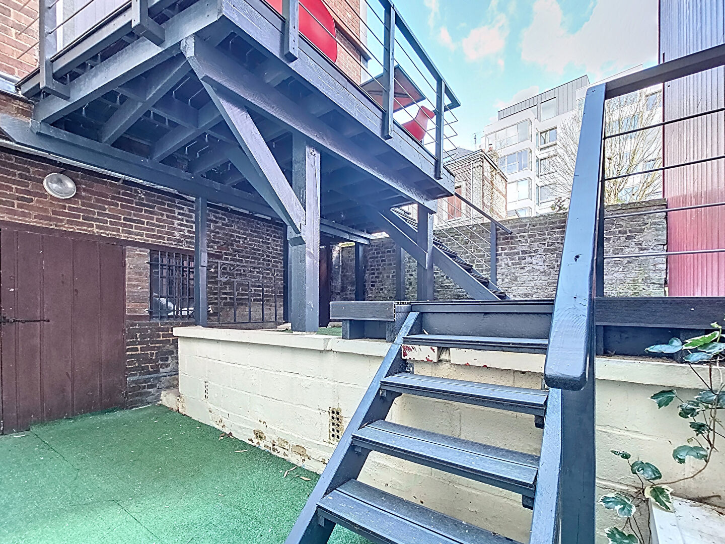 Le premier studio, situé au rez-de-chaussée, est vendu meublé et fait environ 22 m². Il comprend une entrée, un séjour, une kitchenette et une salle de douche. L'accès au reste de la maison se fait par un dégagement indépendant, tandis que le deuxième studio, accessible également par l'extérieur, se trouve au deuxième étage en duplex d'environ 16 m². Ce dernier comprend une cuisine, une chambre et une salle de douche.