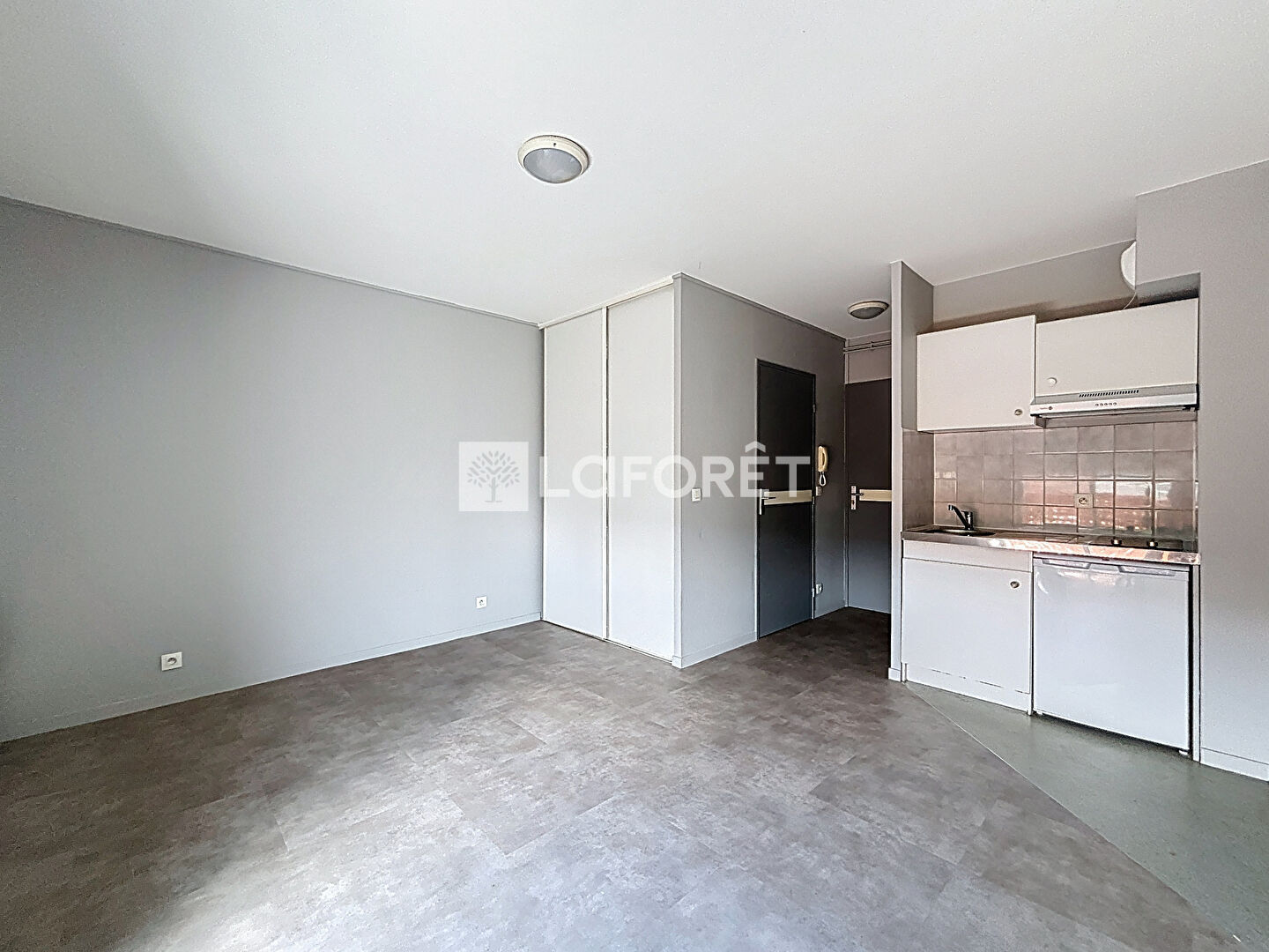Studio en très bon état général composé d'une entrée, pièce de vie principale avec cuisine aménagée et équipée (réfrigérateur, plaques de cuisson et hotte), placard de rangement avec machine à laver intégrée, salle de bains et un WC.