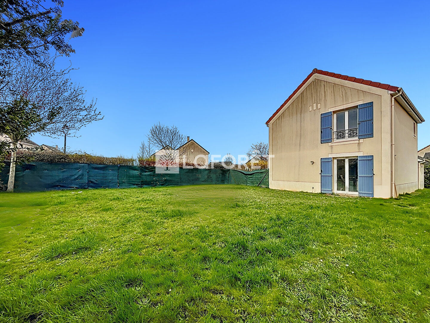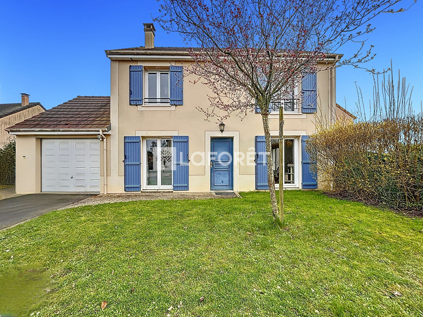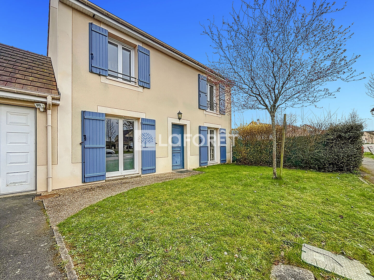 La maison est entourée d'un jardin et dispose également d'un garage fermé.