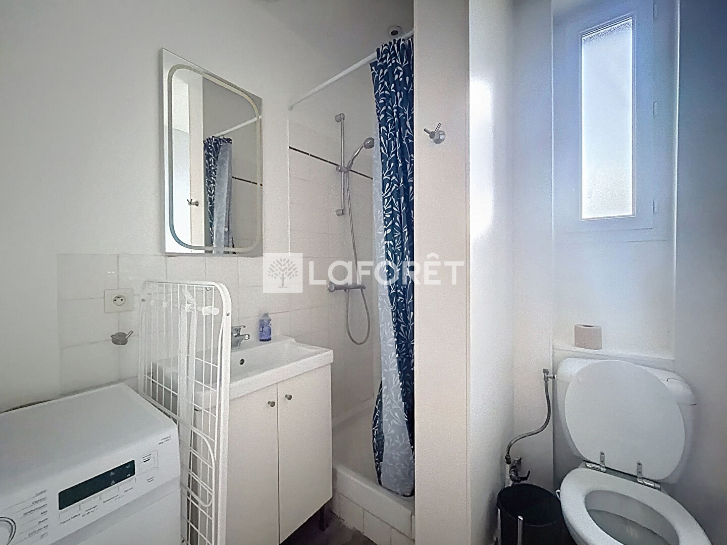 Agréable studio en rez-de-chaussé situé dans une rue calme. Il se compose d'une entrée desservant une pièce à vivre faisant office de chambre, une cuisine aménagée et équipée, une salle de douche avec WC et machine à laver.