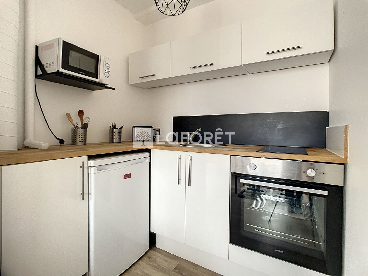 Dans un environnement calme à proximité des commodités et des transports en communs, appartement meublé situé au troisième étage avec ascenseur composé d'une entrée avec placard de rangement, pièce de vie ouverte sur une cuisine aménagée et équipée, une chambre, salle d'eau avec WC.