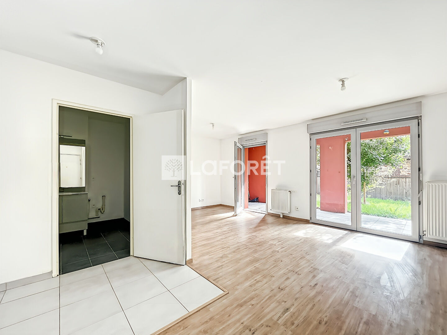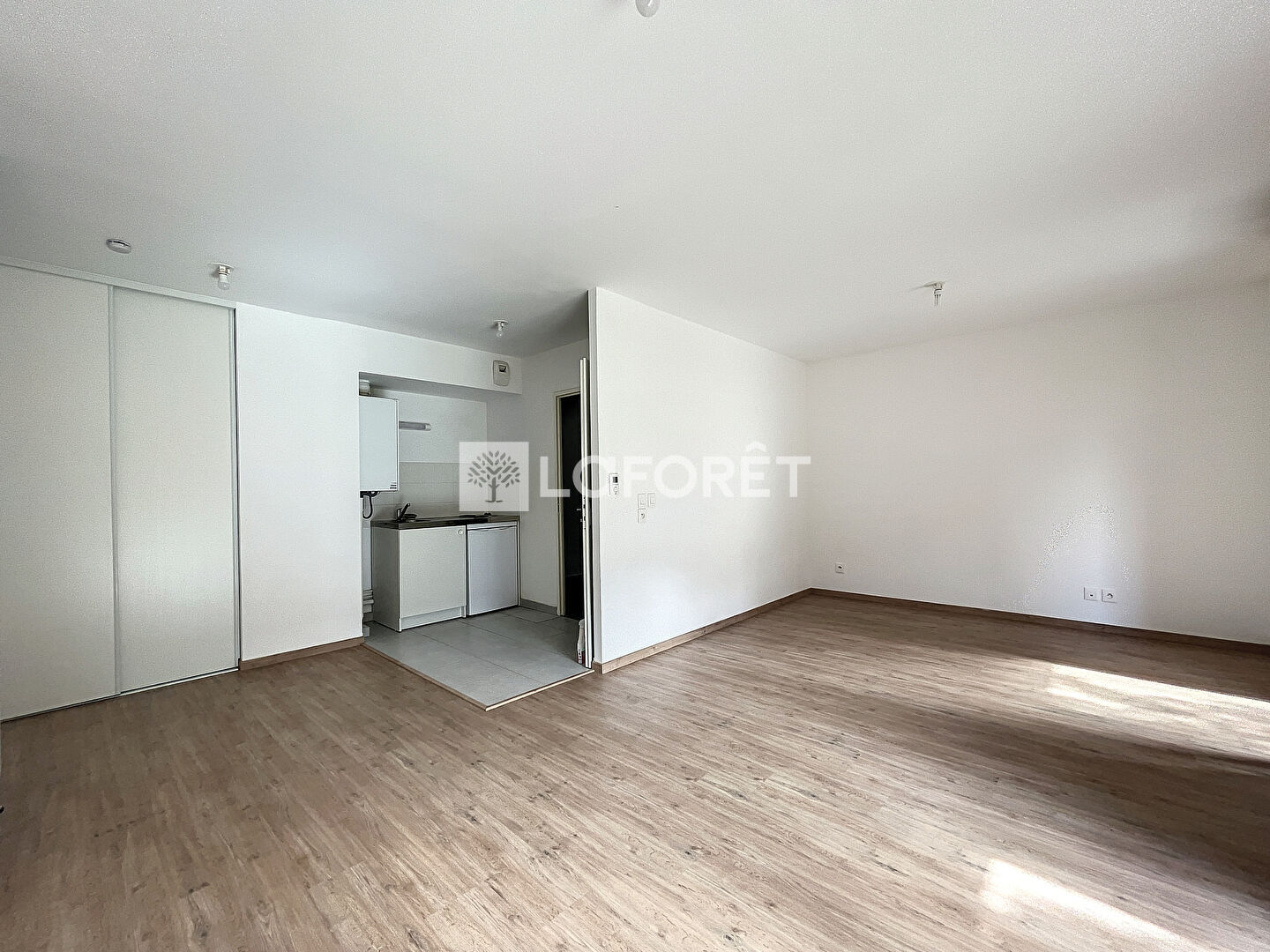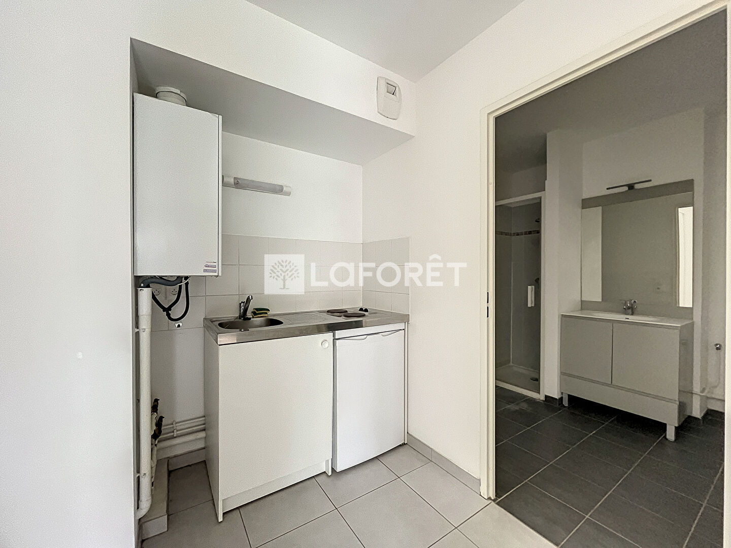 Studio d'une superficie de 32 m² comprenant pièce principale, coin kitchenette, salle de douche avec WC. Il dispose d'une terrasse et d'un jardin privatif.