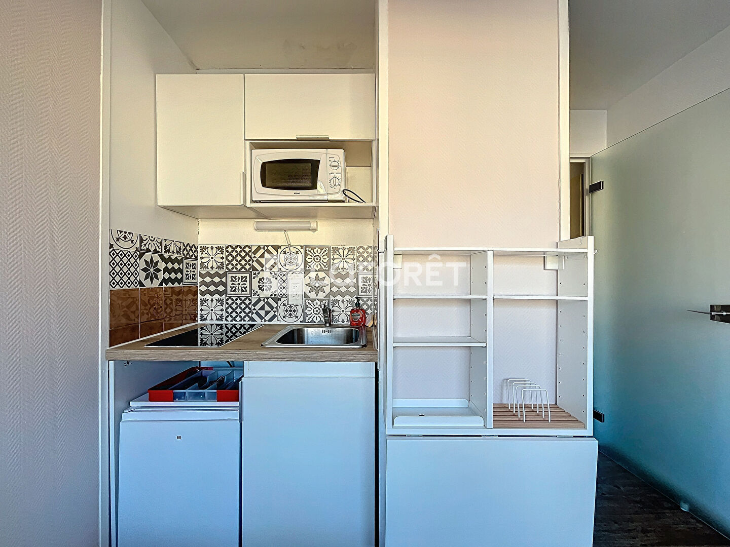 En location : studio meublé de 15.05m². Dans une résidence sécurisée, cet appartement se compose d'une entrée, d'un séjour avec un coin kitchenette et d'une salle de douche avec WC.