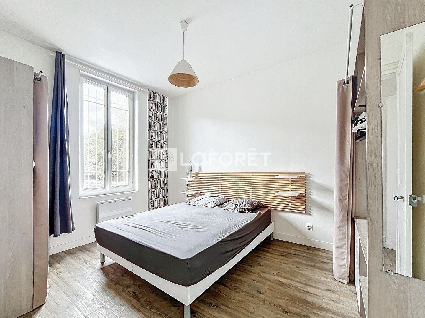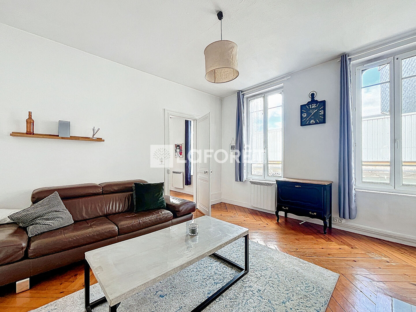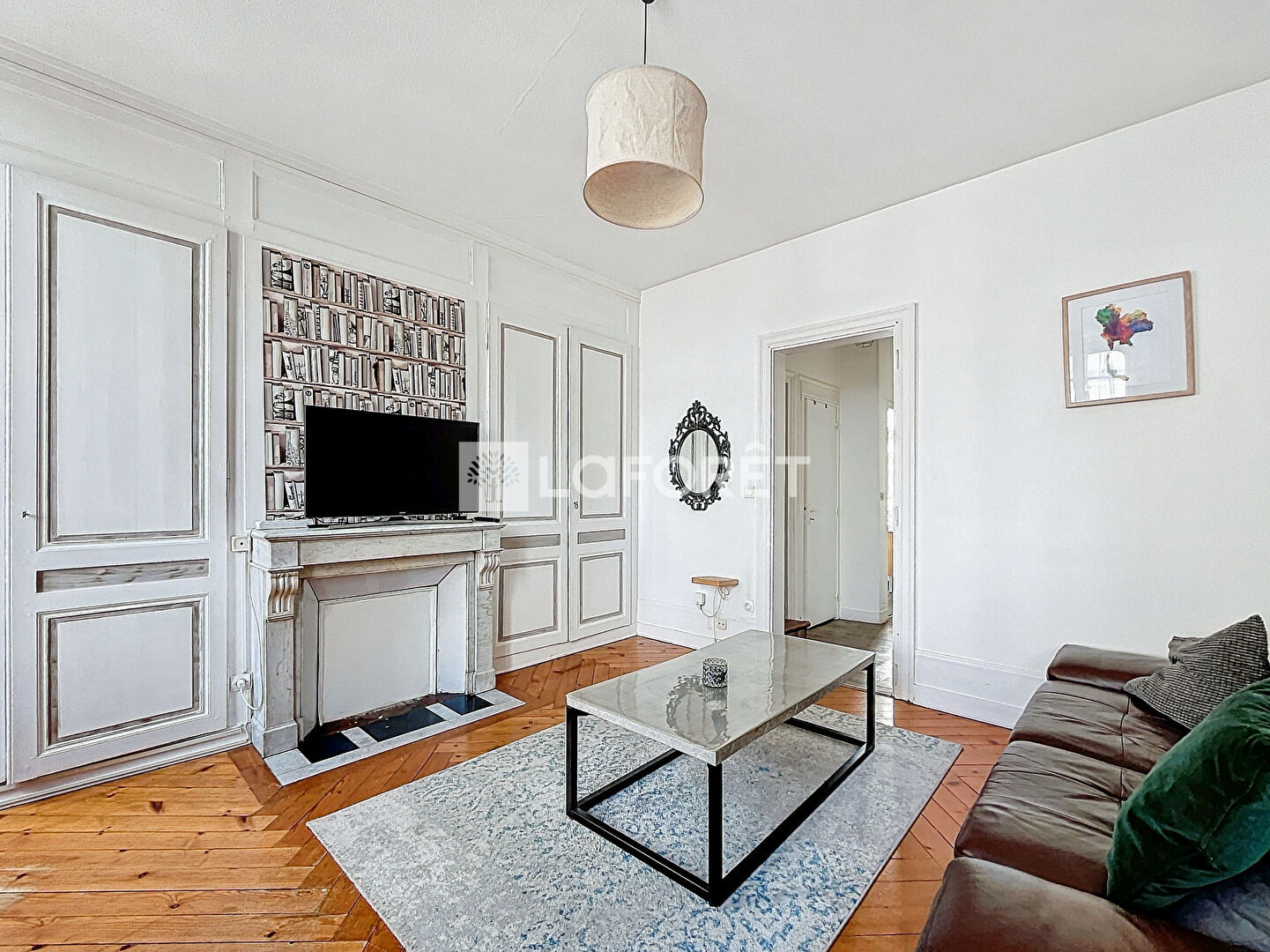 Parquet ancien et cheminée apportent un charme supplémentaire au logement.