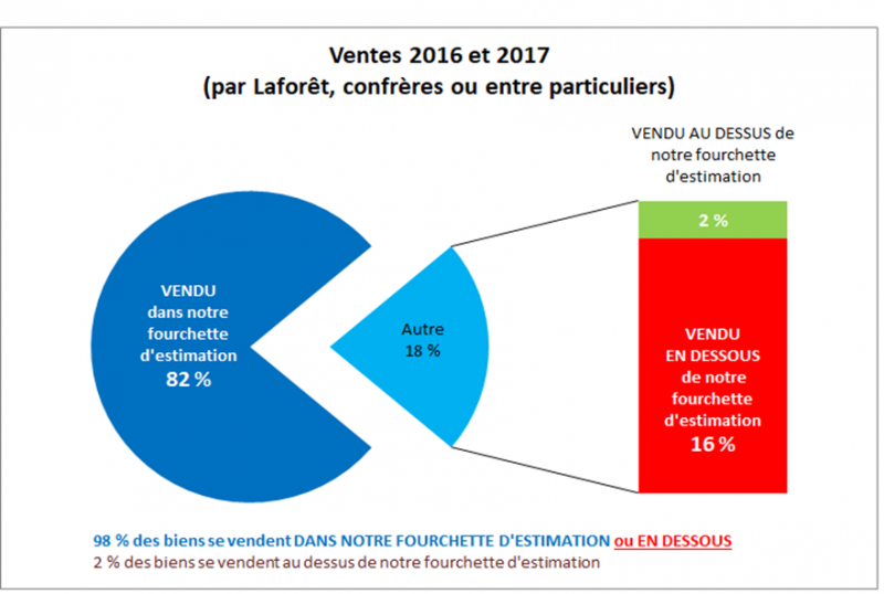 - 82 % des biens se vendent dans notre fourchette d’estimation