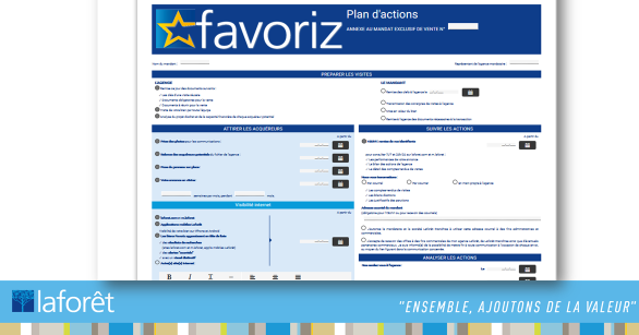 Le mandat Favoriz, assorti de la garantie après-vente de 1 an offerte aux acquéreurs et d’un plan d’actions précis avec des engagements : une visibilité optimale, une publicité soutenue, des contacts réguliers.