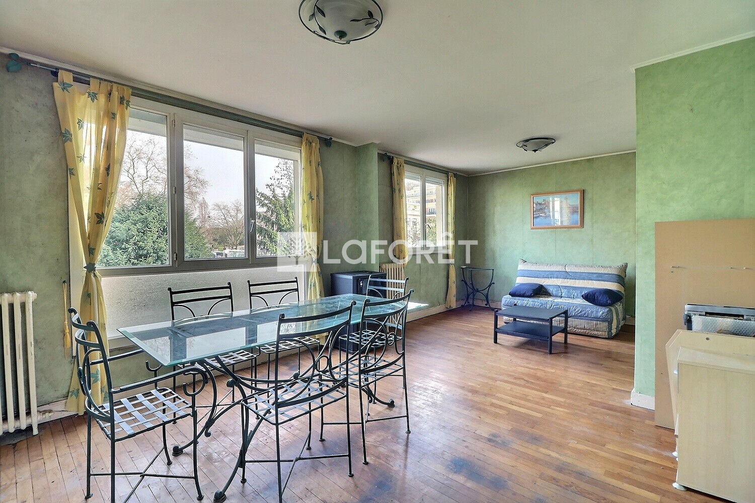 L'agence LAFORET vous présente cet appartement de 3 pièces composé d'un double séjour sur jardin, cuisine séparées, salle de bains, wc séparés et chambre, le tout, à rafraichir.