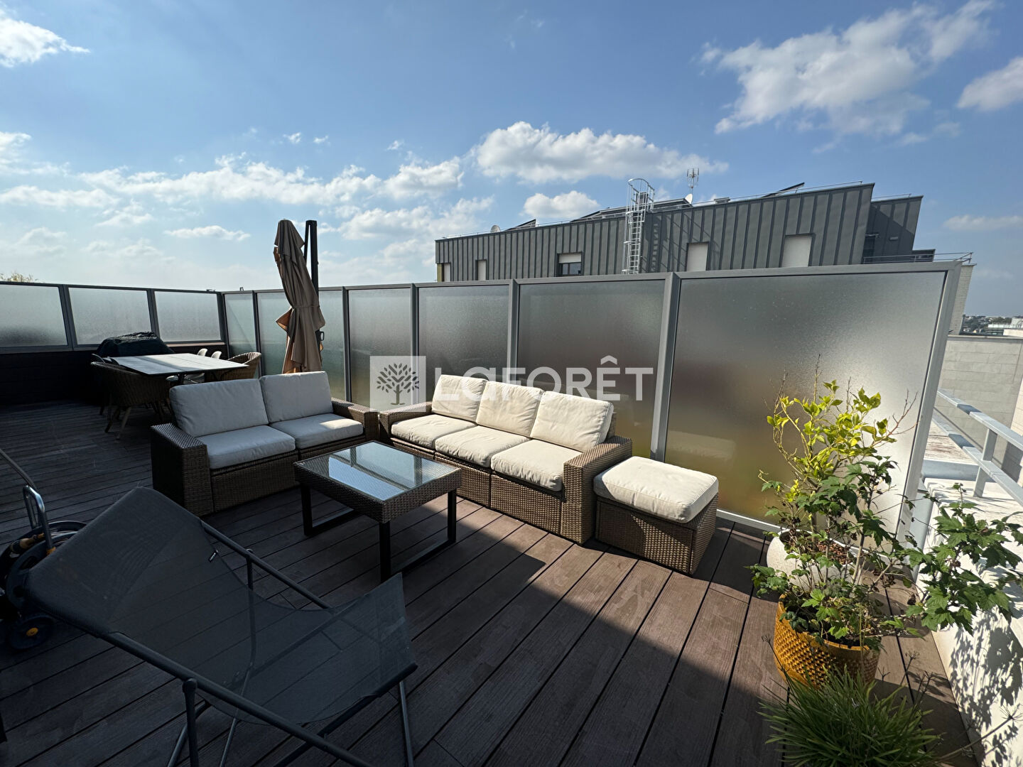 Deux des trois chambres sont reliées par une troisième terrasse.