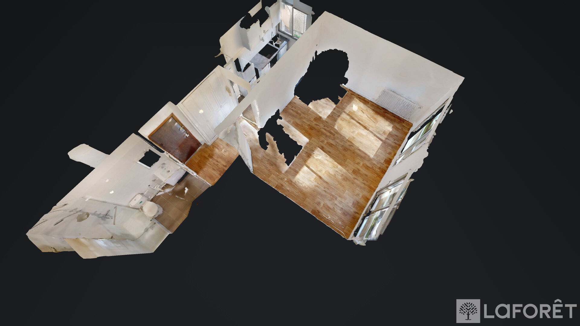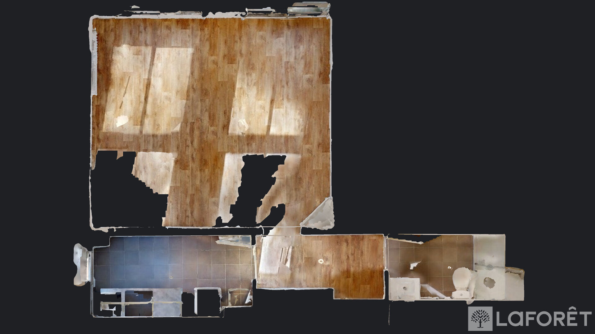 Entrée avec placard, grand séjour, cuisine aménagée (plaque 4 feux induction, hotte, réfrigérateur), salle bains avec wc et emplacement lave-linge.