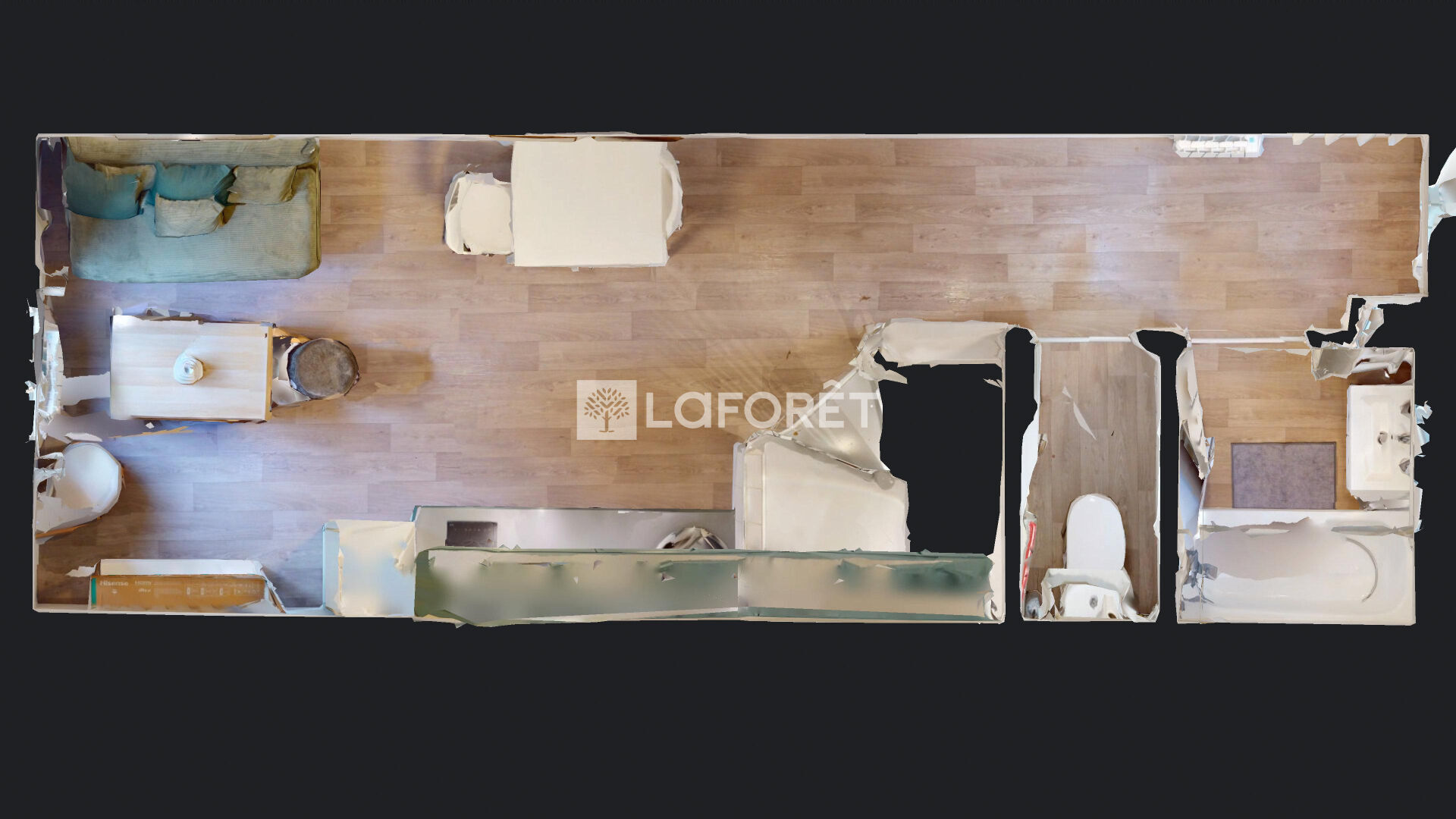 d'environ 37 m² comprenant principalement : entrée, séjour avec cuisine aménagée & équipée , salle de bains, wc.
