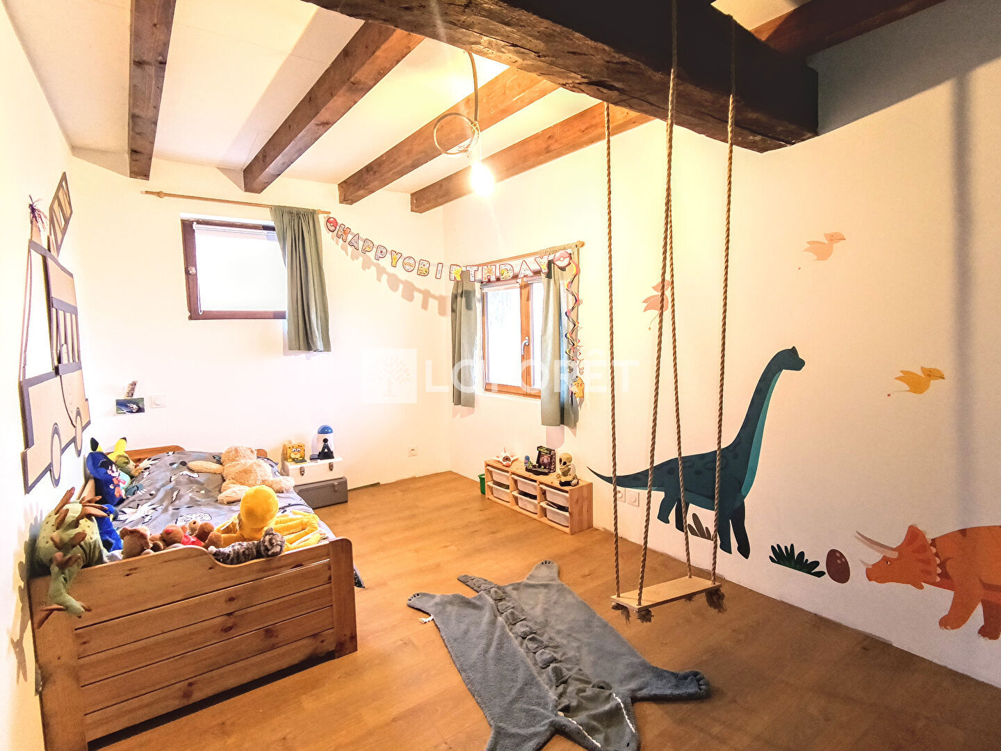 La maison comprend en rez de chaussée: une entrée, une cuisine récente, aménagée équipée, donnant sur le jardin, une très belle pièce de vie avec son poêle à granule et ouvrant également sur le terrain, un cellier , W.C et grand garage (35m²). A l'étage 4 chambres (entre 12m² et 18m²), mezzanine, salle d'eau, salle de bain et un W.C. Les combles au dessus permettent de laisser encore beaucoup de possibilités.