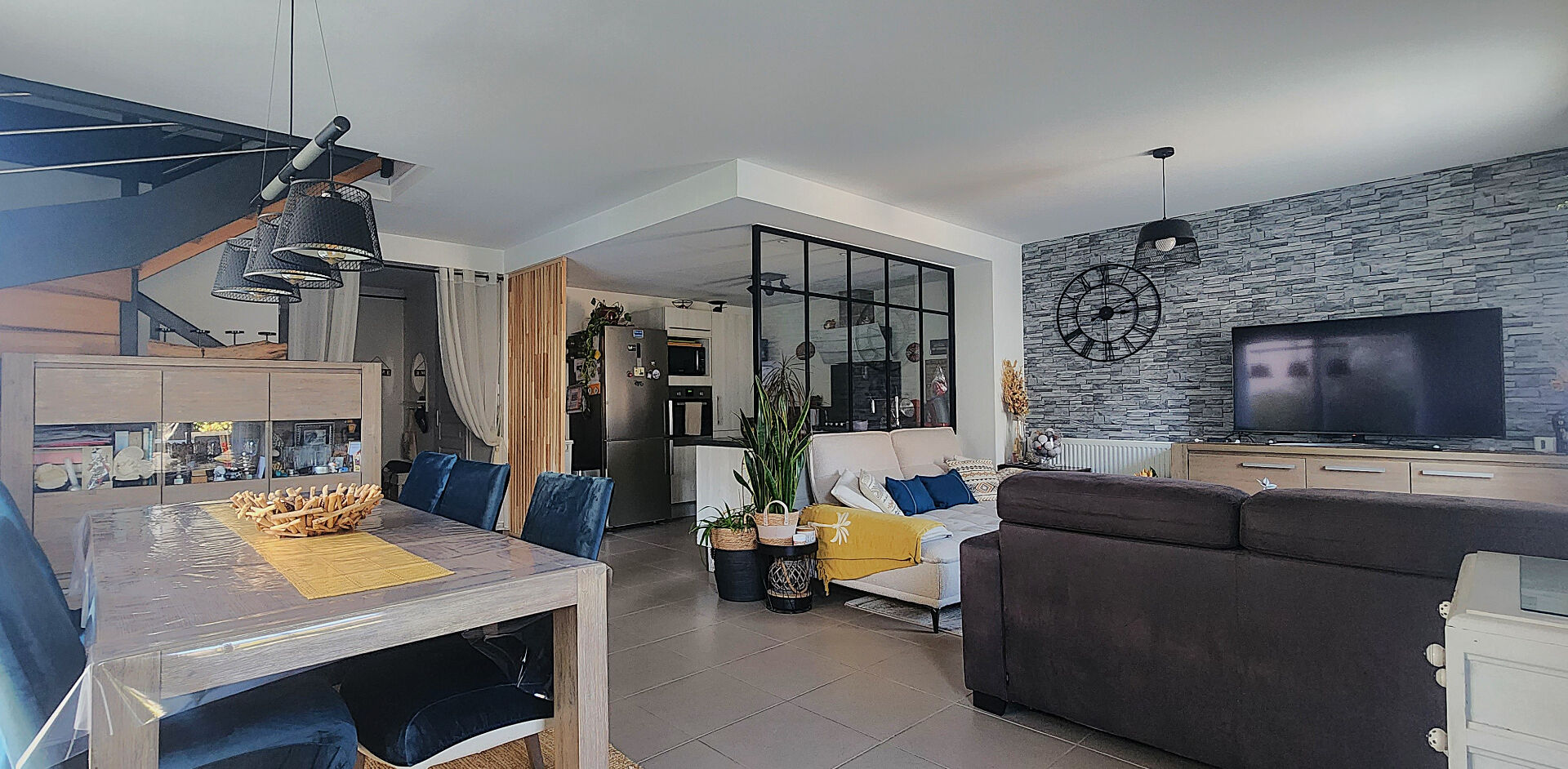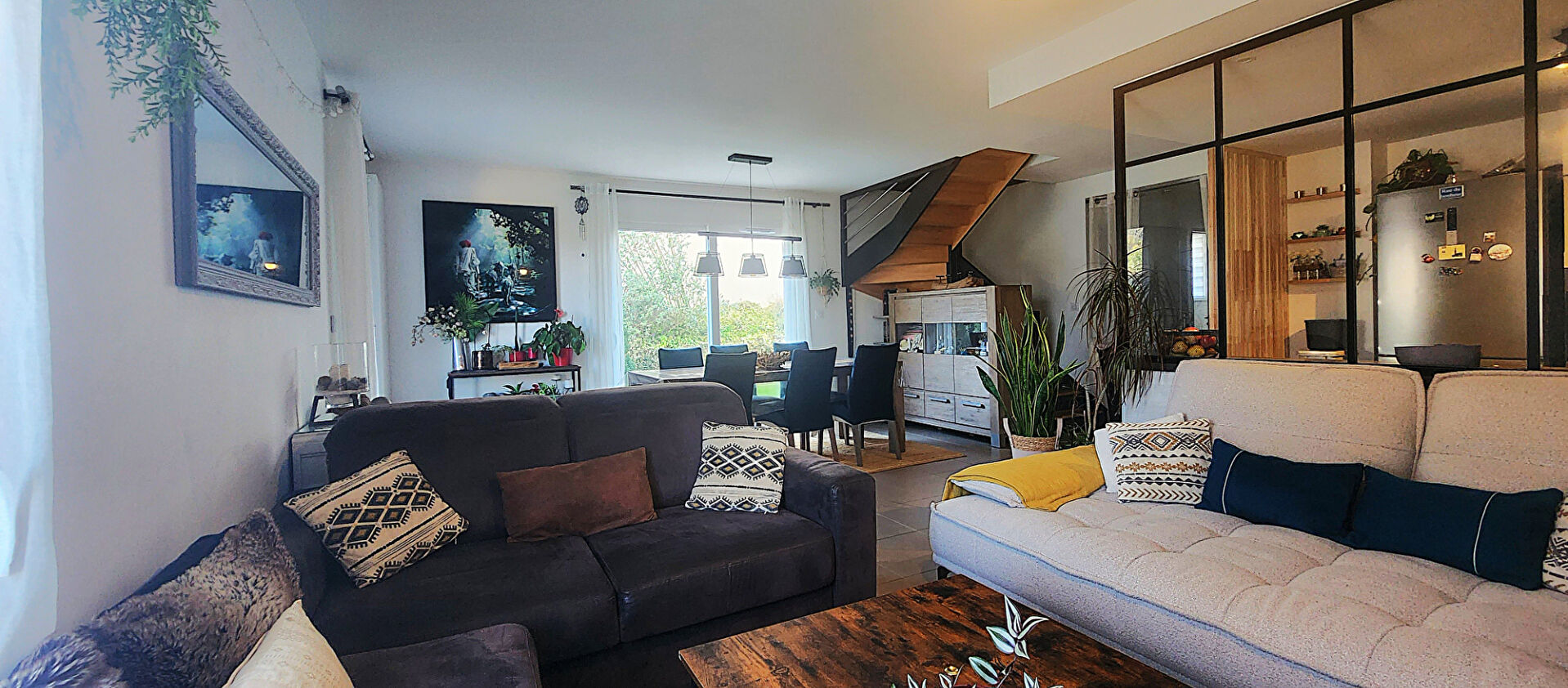 Elle se compose au rez-de-chaussée d'un séjour lumineux avec cuisine semi-ouverte, offrant un espace de vie convivial. Un garage et un espace de stockage complète le rez-de-chaussée.