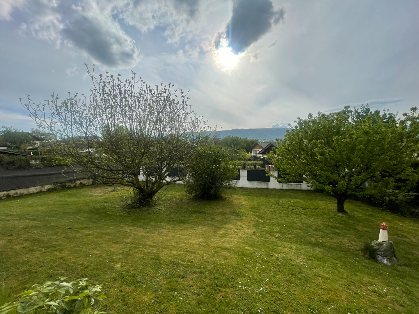 Un terrain clos d'environ 800 m² avec stationnement entoure la maison.