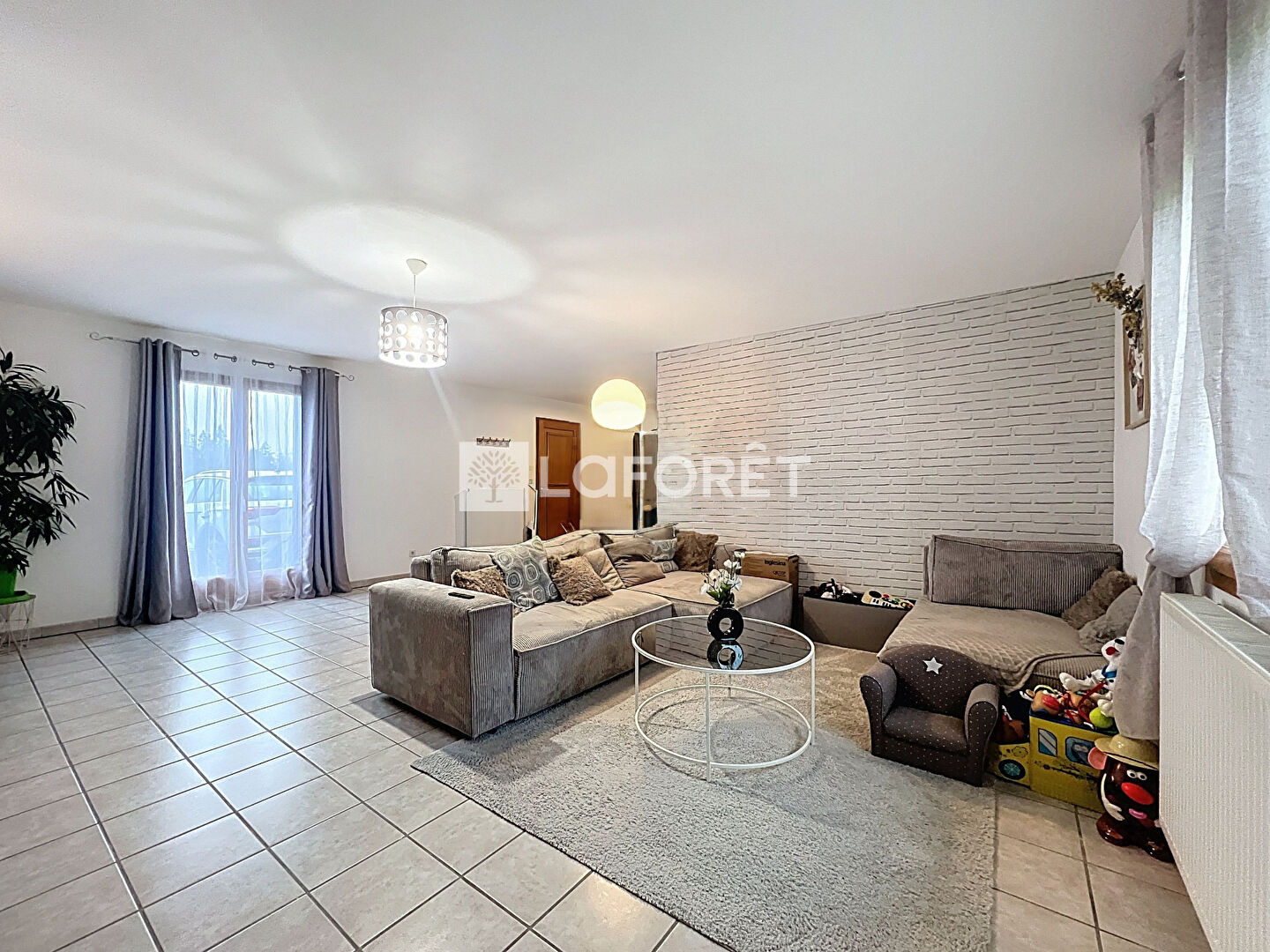 Vous découvrirez dès l'entrée une spacieuse pièce de vie lumineuse, ainsi qu'une cuisine séparée entièrement aménagée et équipée, idéale pour accueillir vos moments en famille.