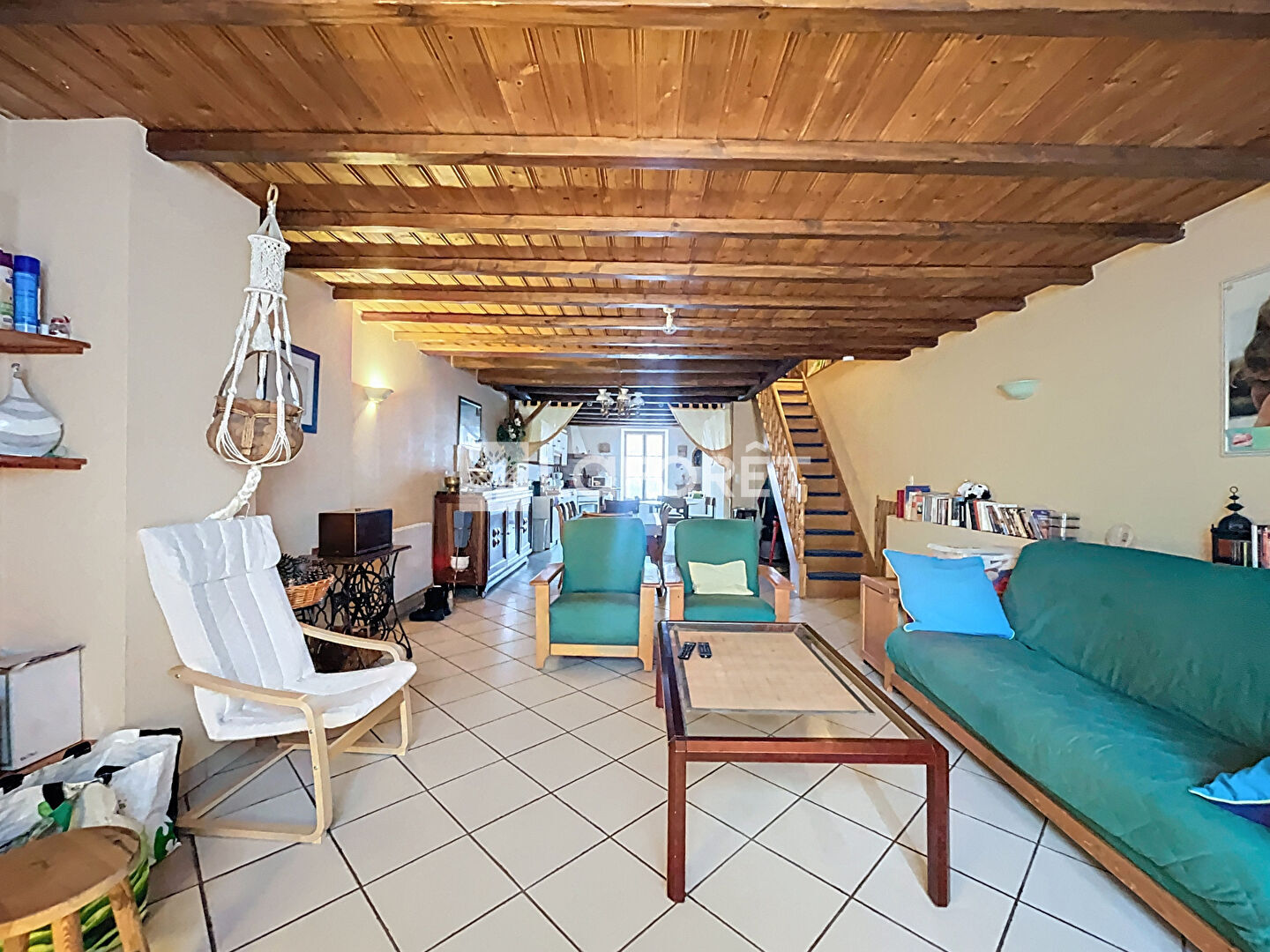 Le premier étage offre un bel espace de vie de 51 m², composé d'une grande pièce salon / salle à manger avec cuisine ouverte, idéal pour recevoir et partager des moments conviviaux.