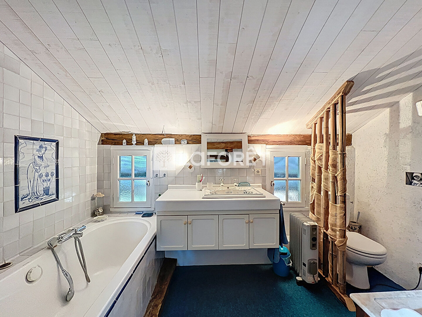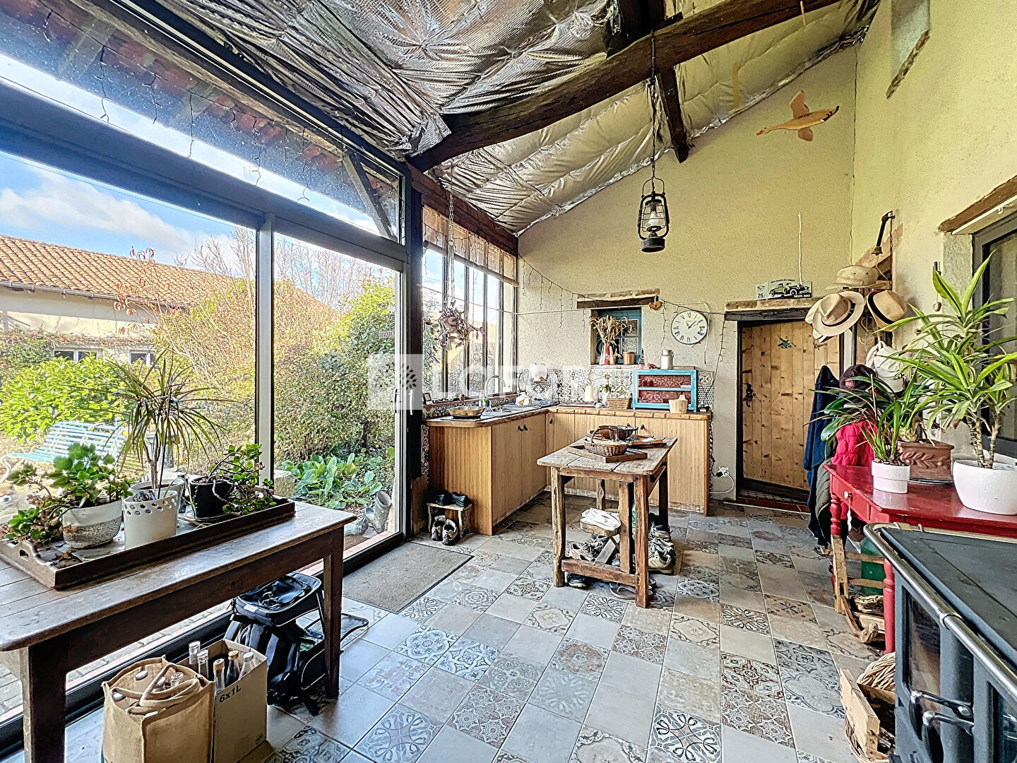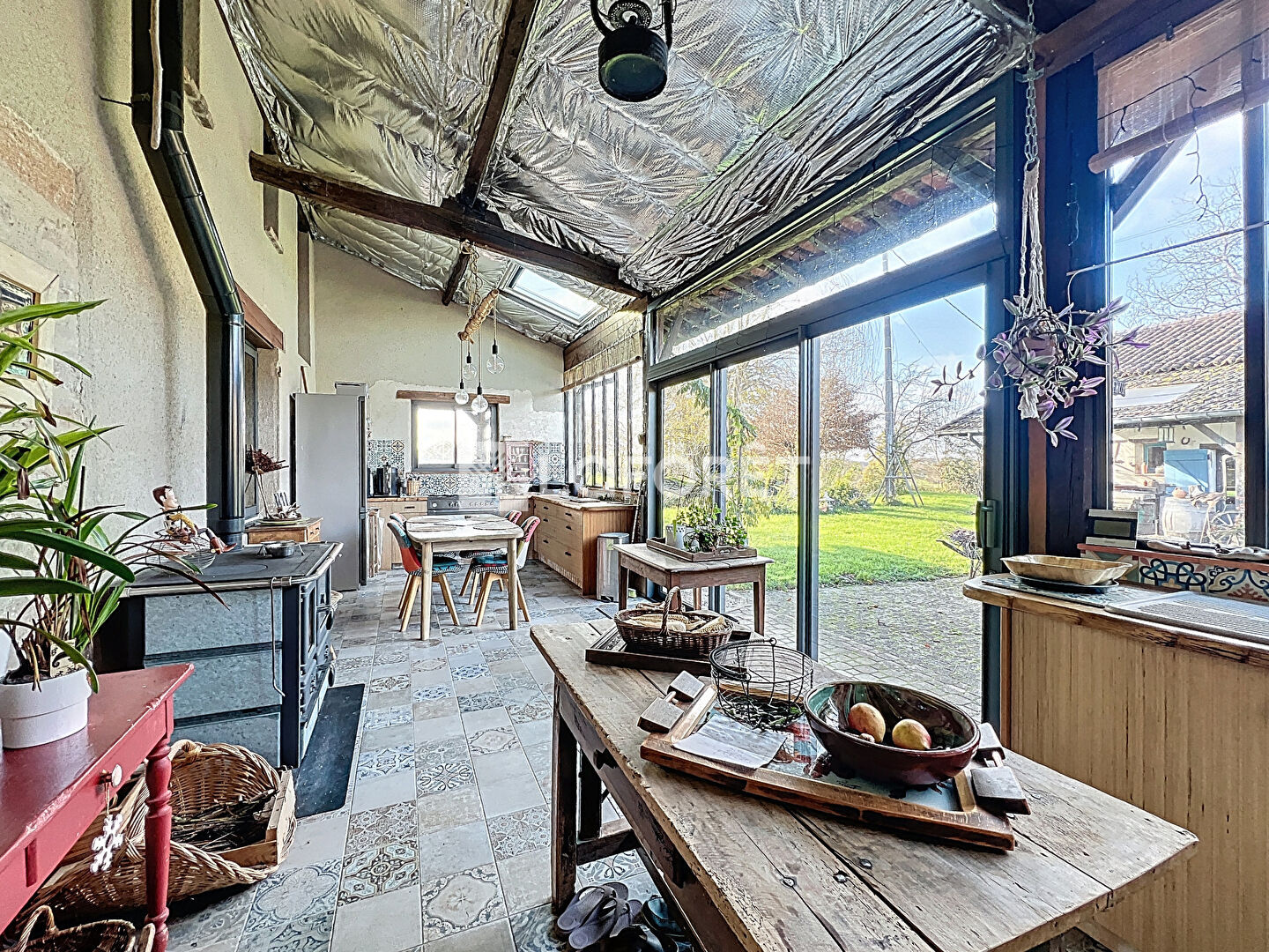 Coté techniques : Fenêtres double vitrage ALU, Chauffage poêle à bois et convecteurs, Panneaux Photovoltaïques.