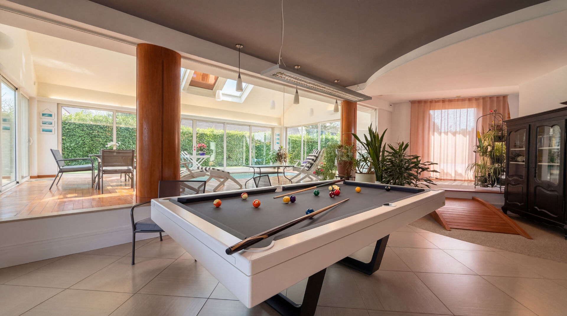 Dans le prolongement, un véritable espace bien-être avec une piscine intérieure installée dans un pool-house d'environ 50 m², permettant d'en profiter toute l'année.