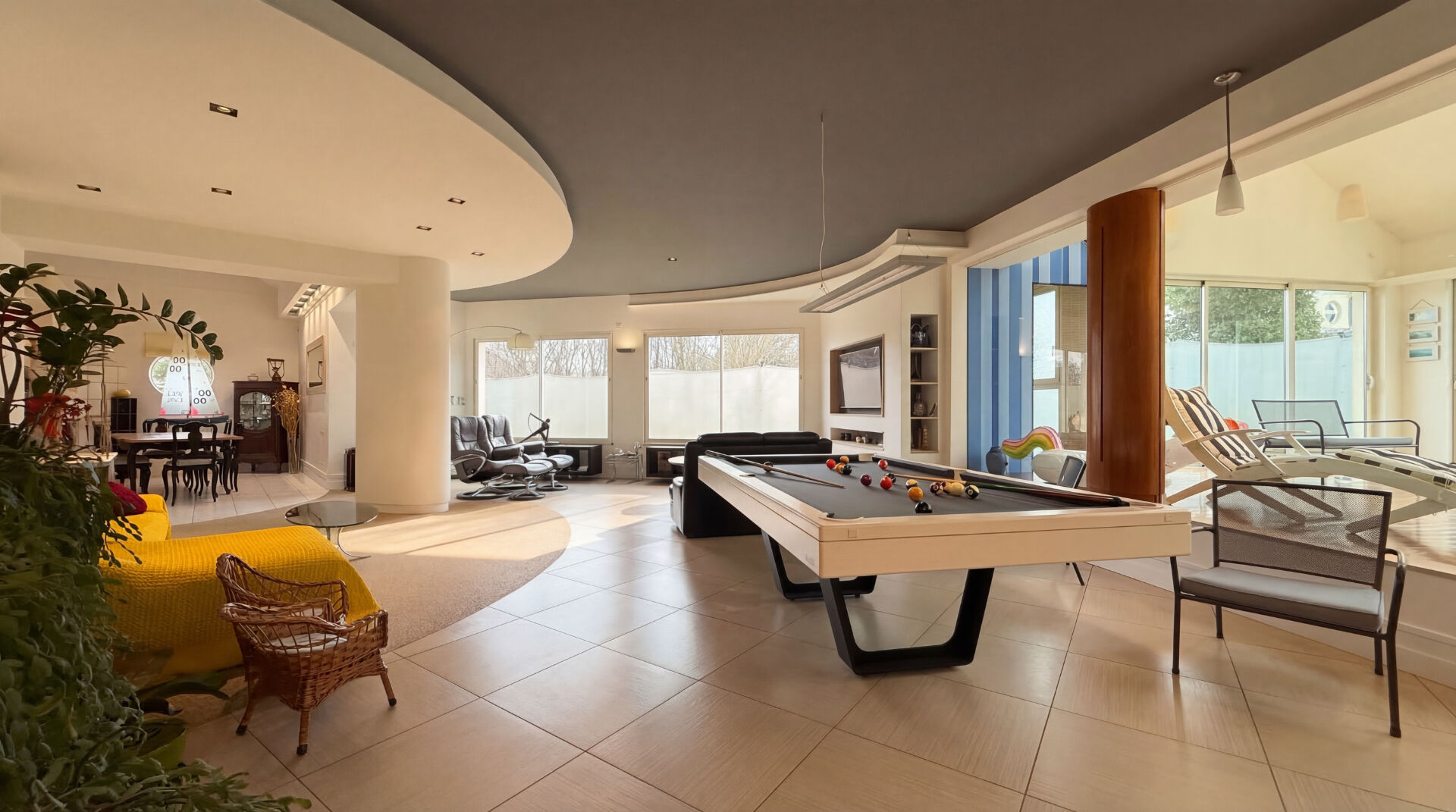 Située dans un environnement calme et recherché, découvrez cette maison d'architecte des années 80 entièrement rénovée, offrant près de 300 m² habitables sur un terrain de plus de 1 300 m².