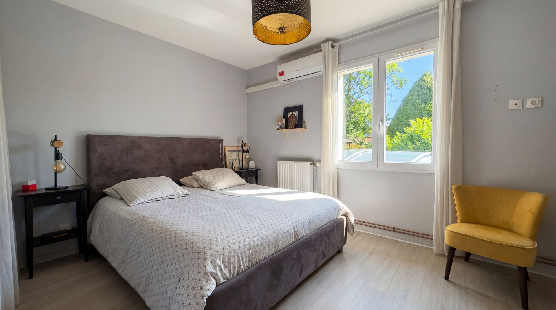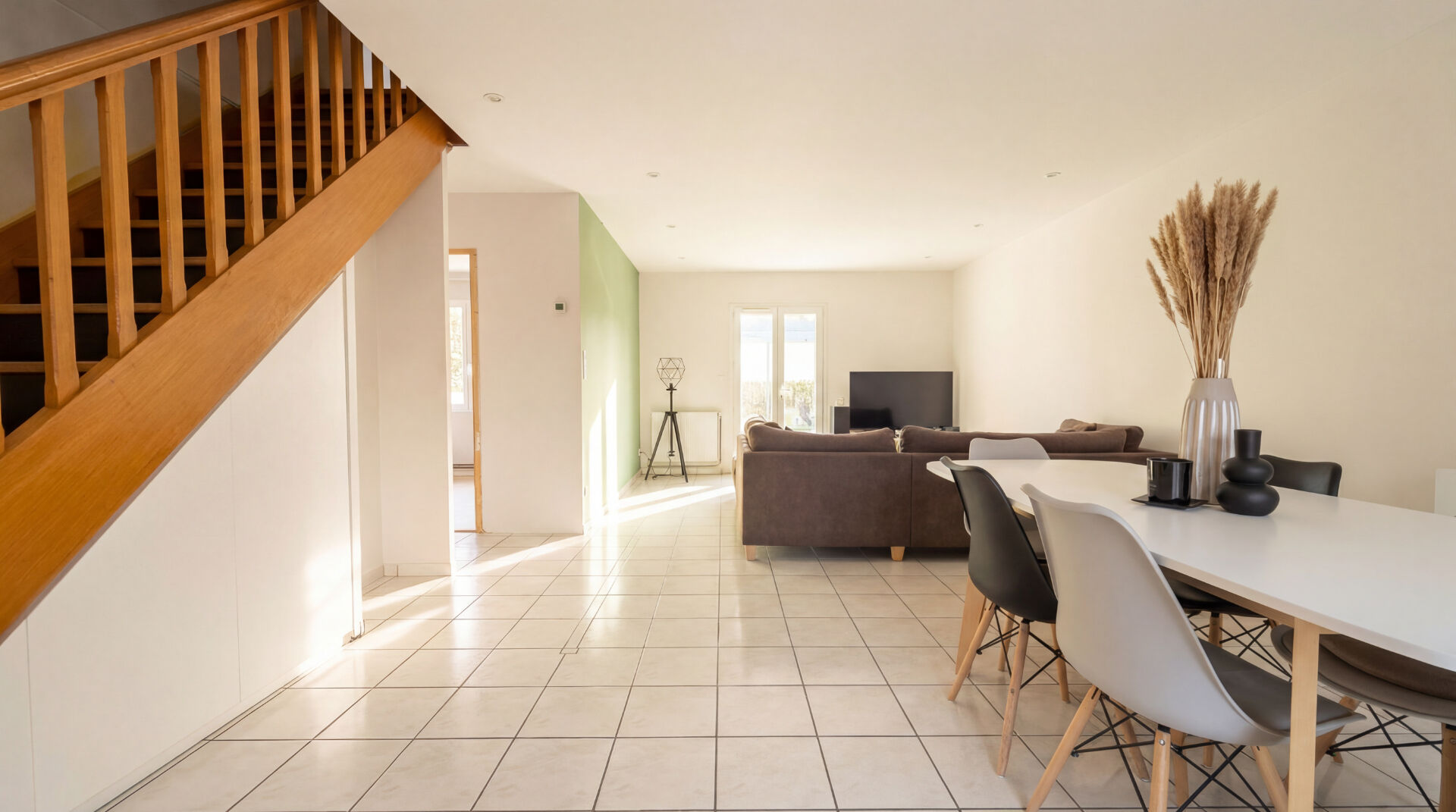 La maison propose trois chambres, dont une au rez-de-chaussée avec salle de bain, permettant une véritable vie de plain-pied. Les espaces de vie sont complétés par une belle véranda, idéale pour profiter de la luminosité en toute saison et créer un lien naturel avec le jardin.