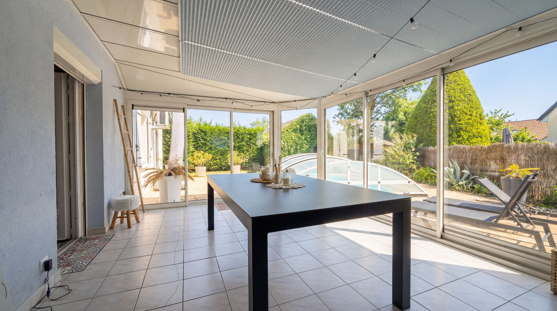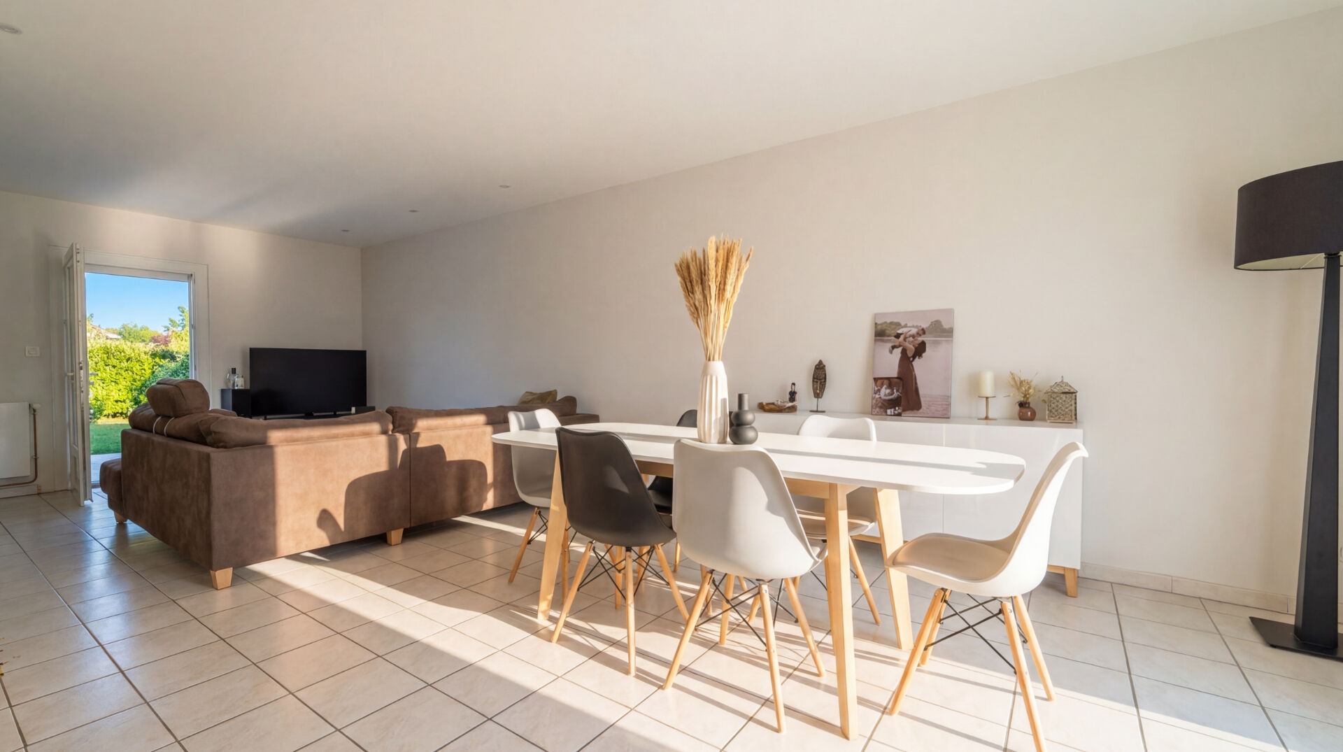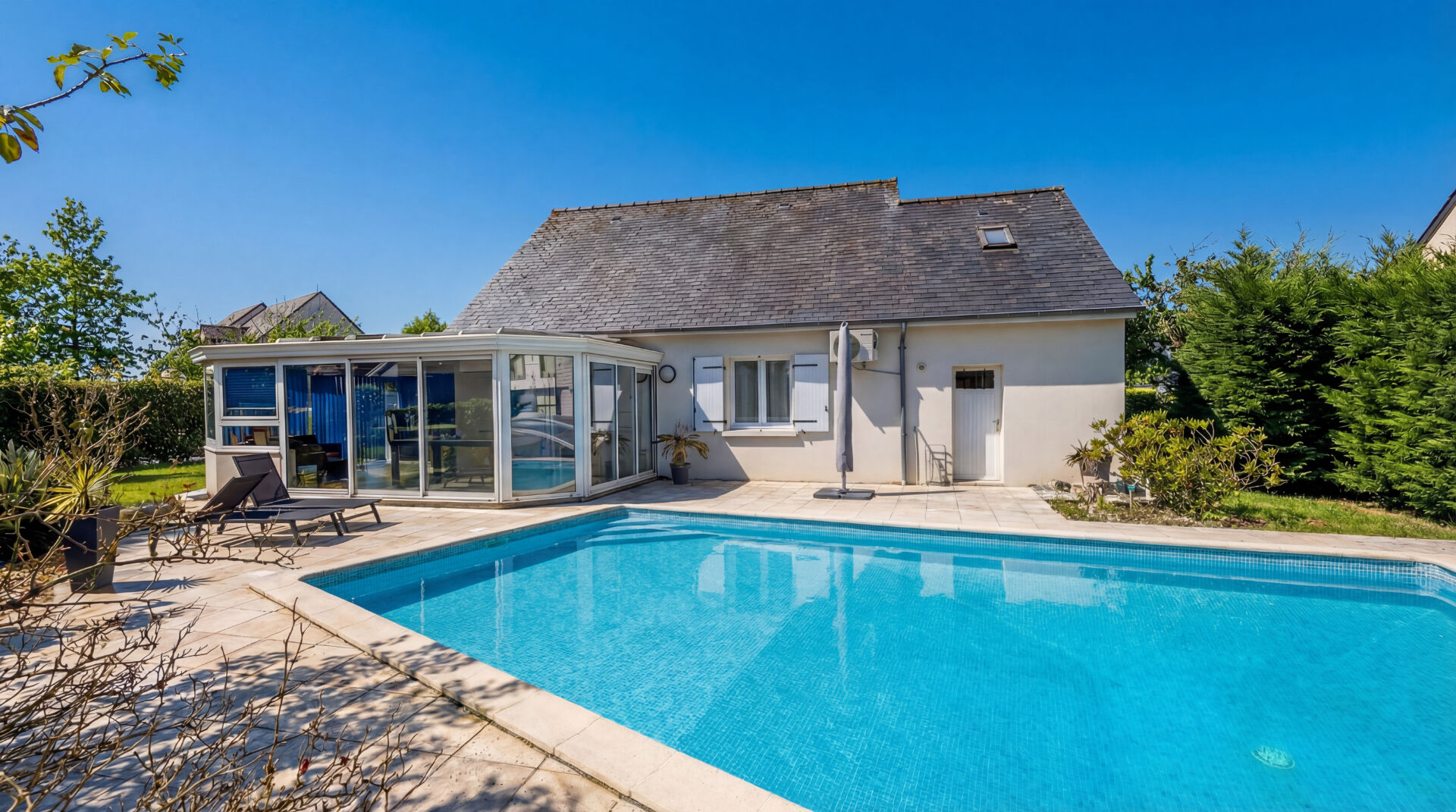 Cette maison familiale propose environ 120 m² habitables et est implantée sur un terrain d'environ 600 m² avec piscine. Construite en 1988, elle a été rafraîchie récemment et offre un cadre de vie agréable, calme et fonctionnel.