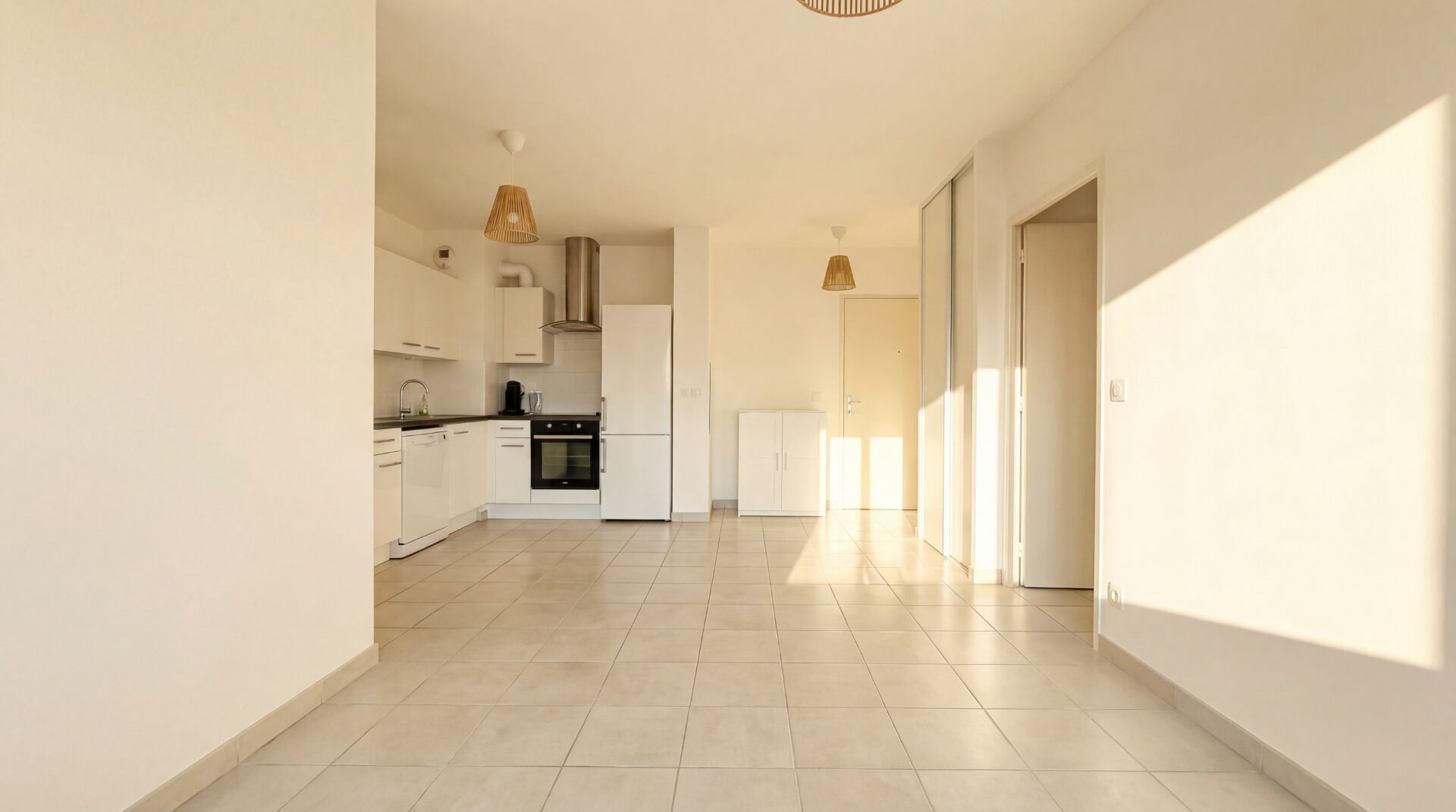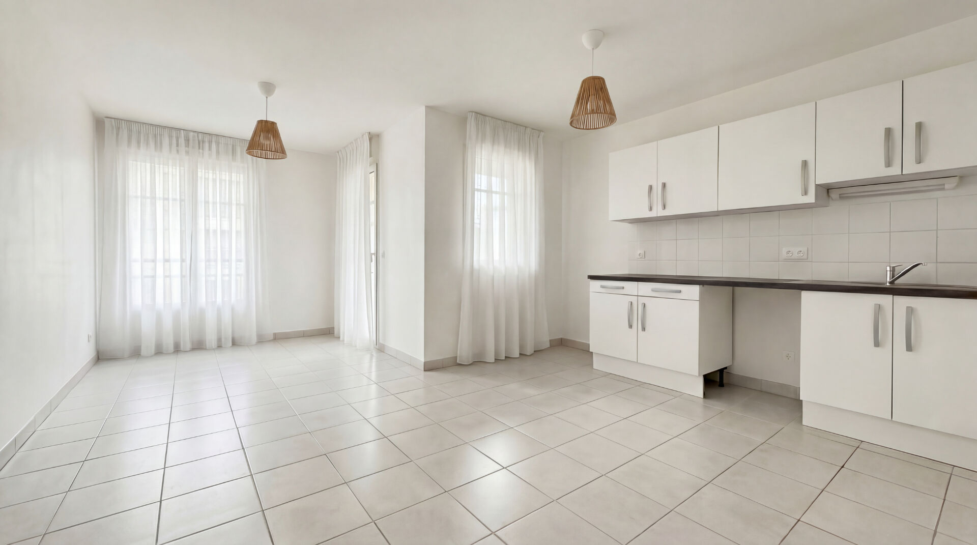 Cuisine ouverte sur un séjour agréable et fonctionnel