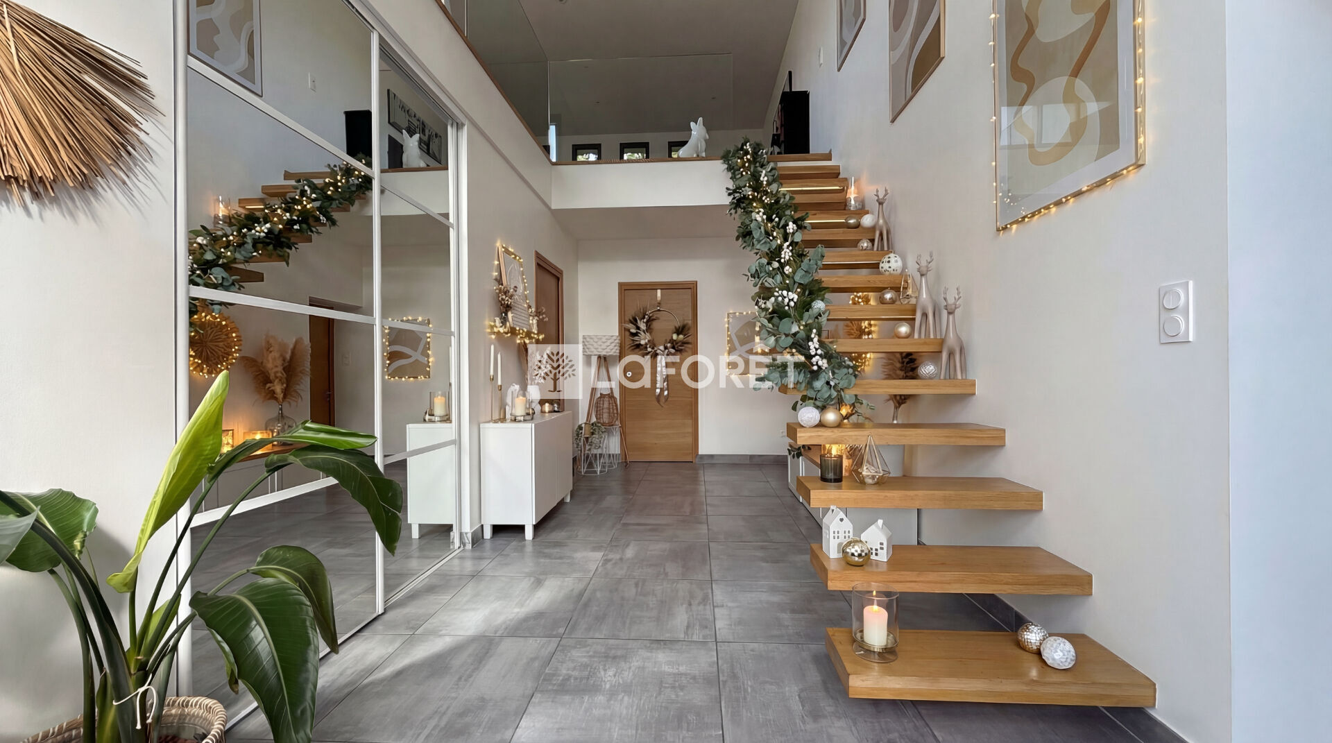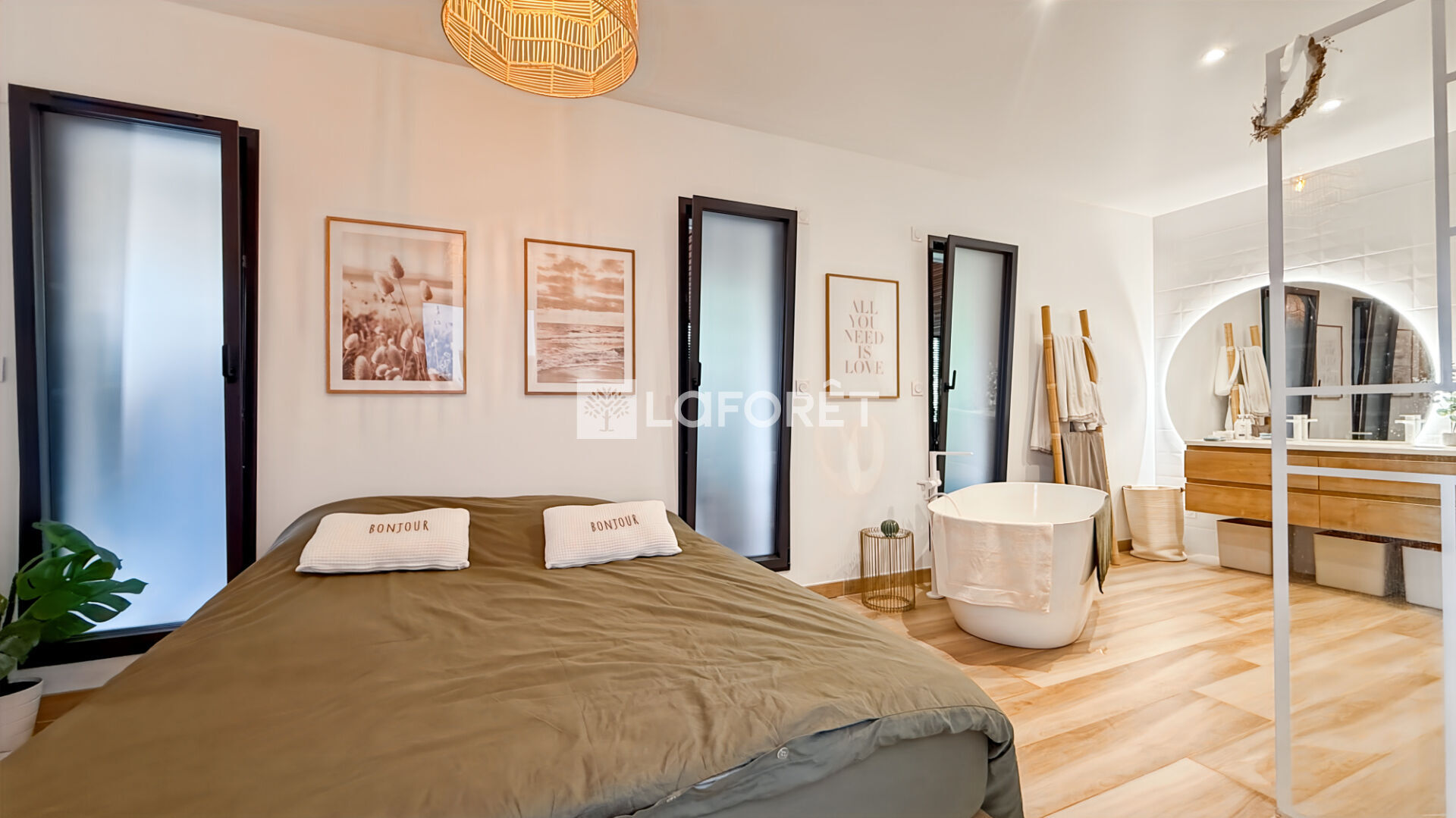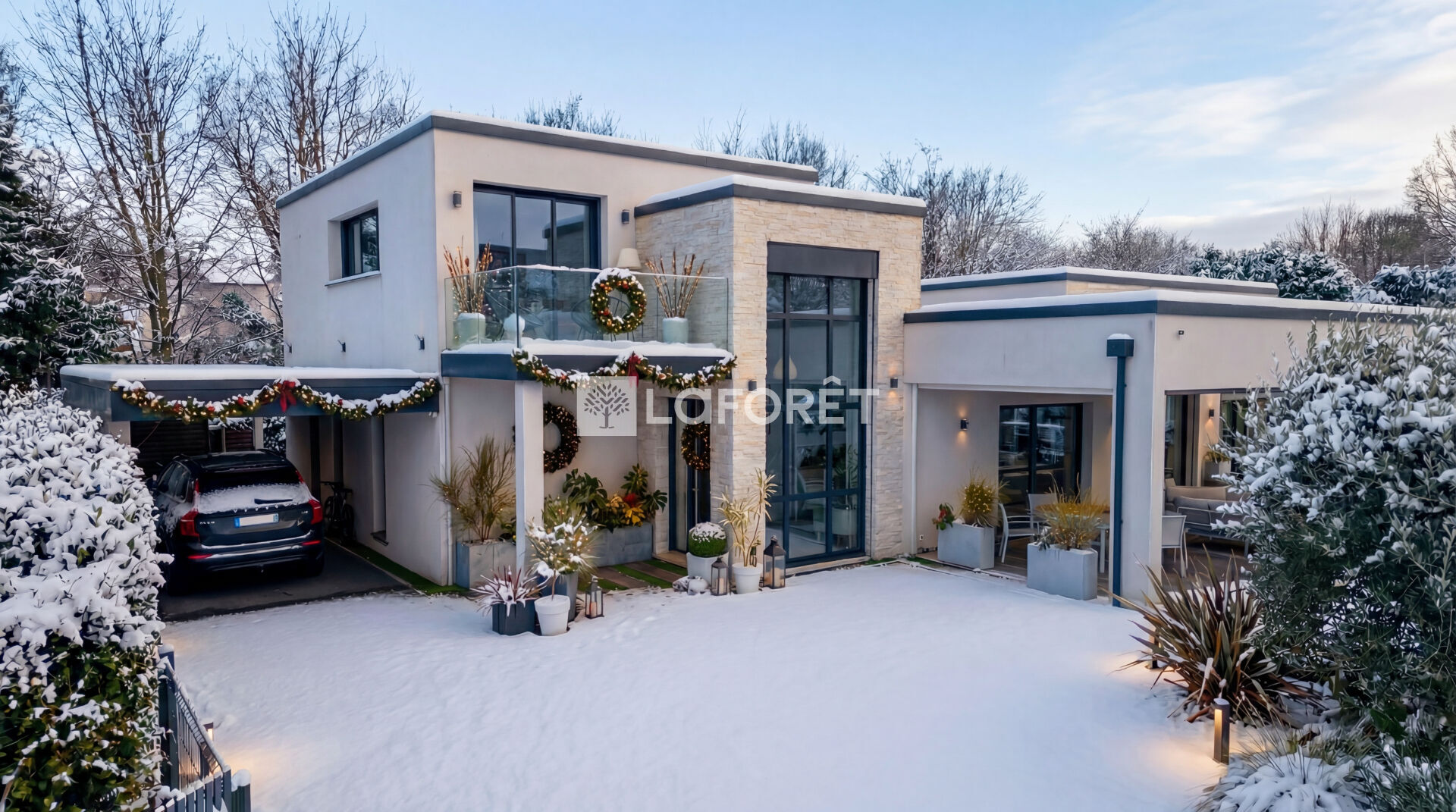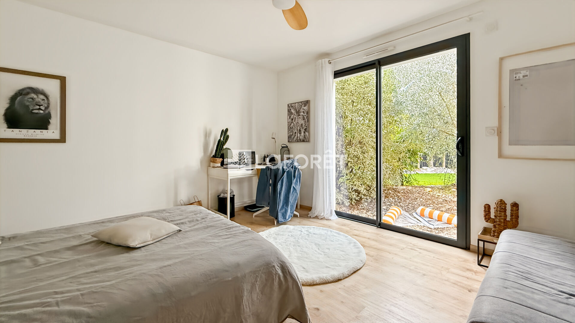 de plain-pied : un hall d'entrée "cathédrale" (avec rangement), une suite parentale (chambre, salle d'eau, WC, dressing), une salle de sports, une cuisine équipée et aménagée ouverte sur la pièce à vivre traversante de près de 50m2; une chambre d'amis ouverte sur la terrasse (avec salle d'eau et grand placard), le hall de nuit dessert un bureau, 3 belles chambres, un dressing partagé, une salle de bains/salle d'eau, un WC indépendant.