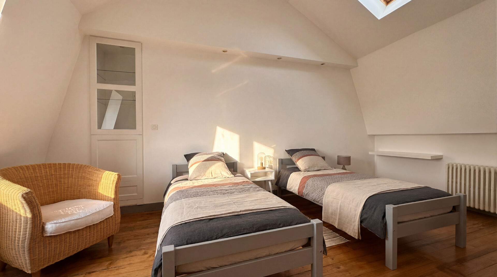 Le dernier niveau accueille deux chambres supplémentaires, chacune disposant de sa propre salle d'eau, offrant confort et indépendance à toute la famille.