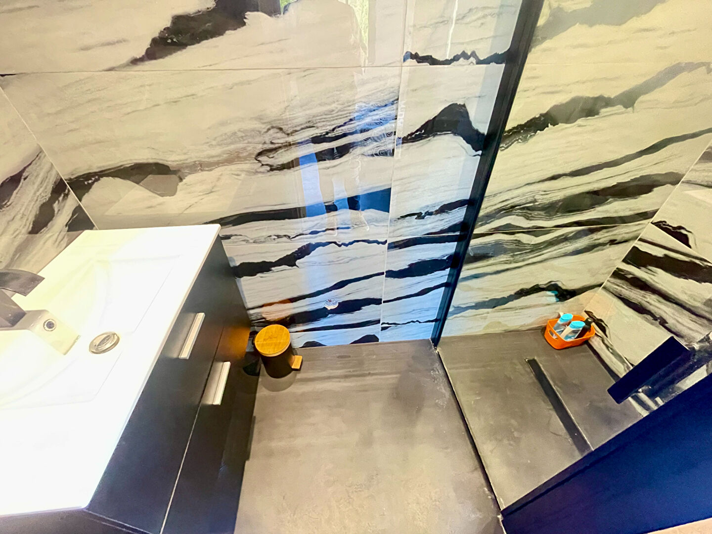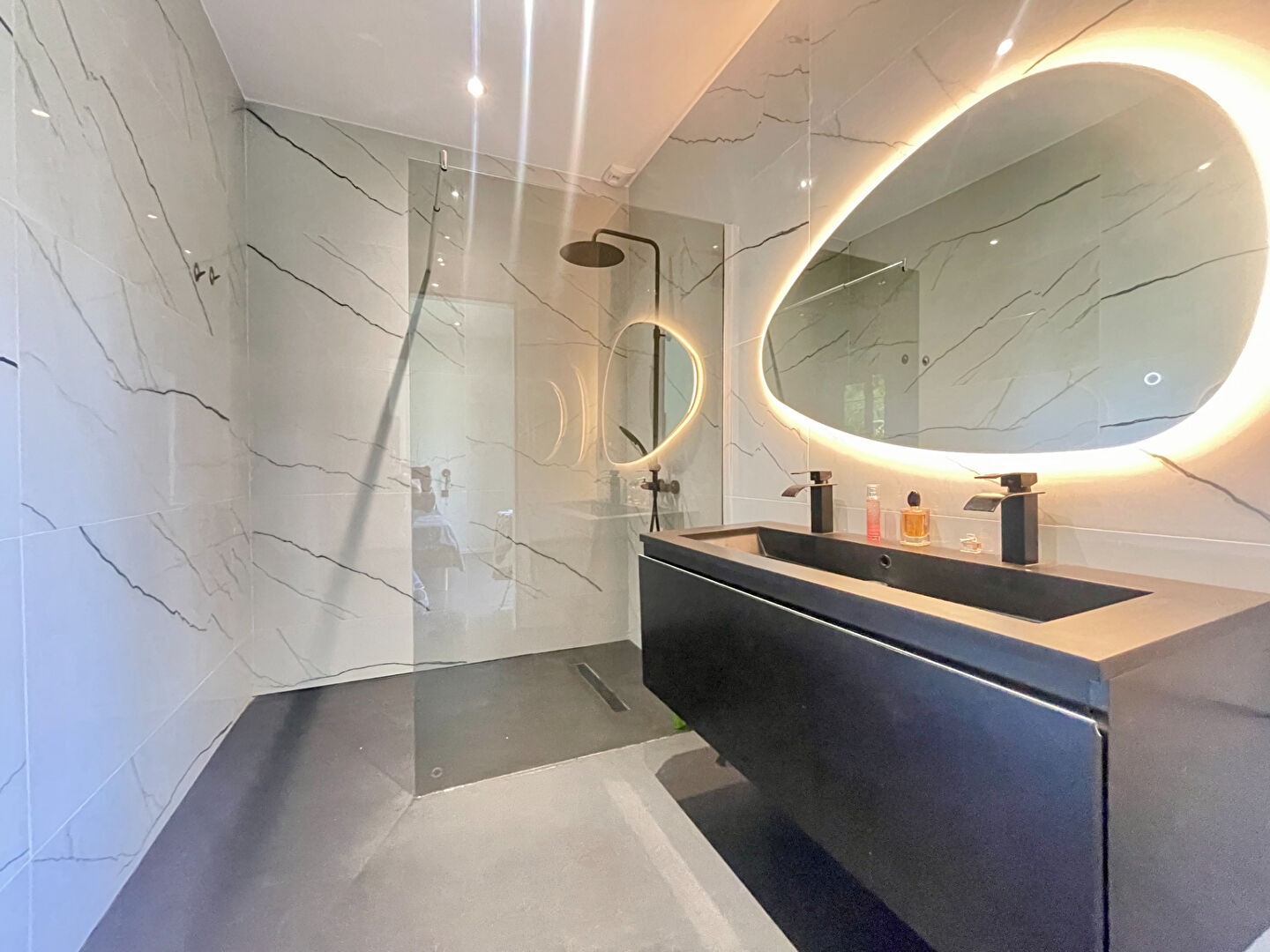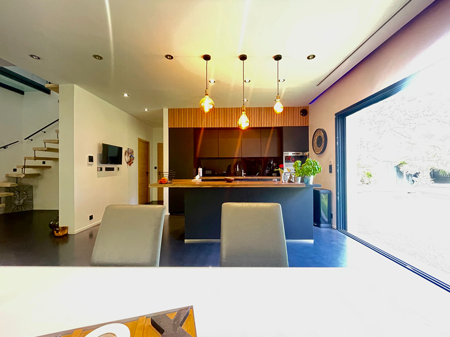 Dès l'entrée, laissez-vous charmer par un vaste espace de vie baigné de lumière, composé d'un salon, d'une salle à manger et d'une cuisine américaine parfaitement équipée, s'ouvrant généreusement sur le jardin et sa somptueuse piscine.