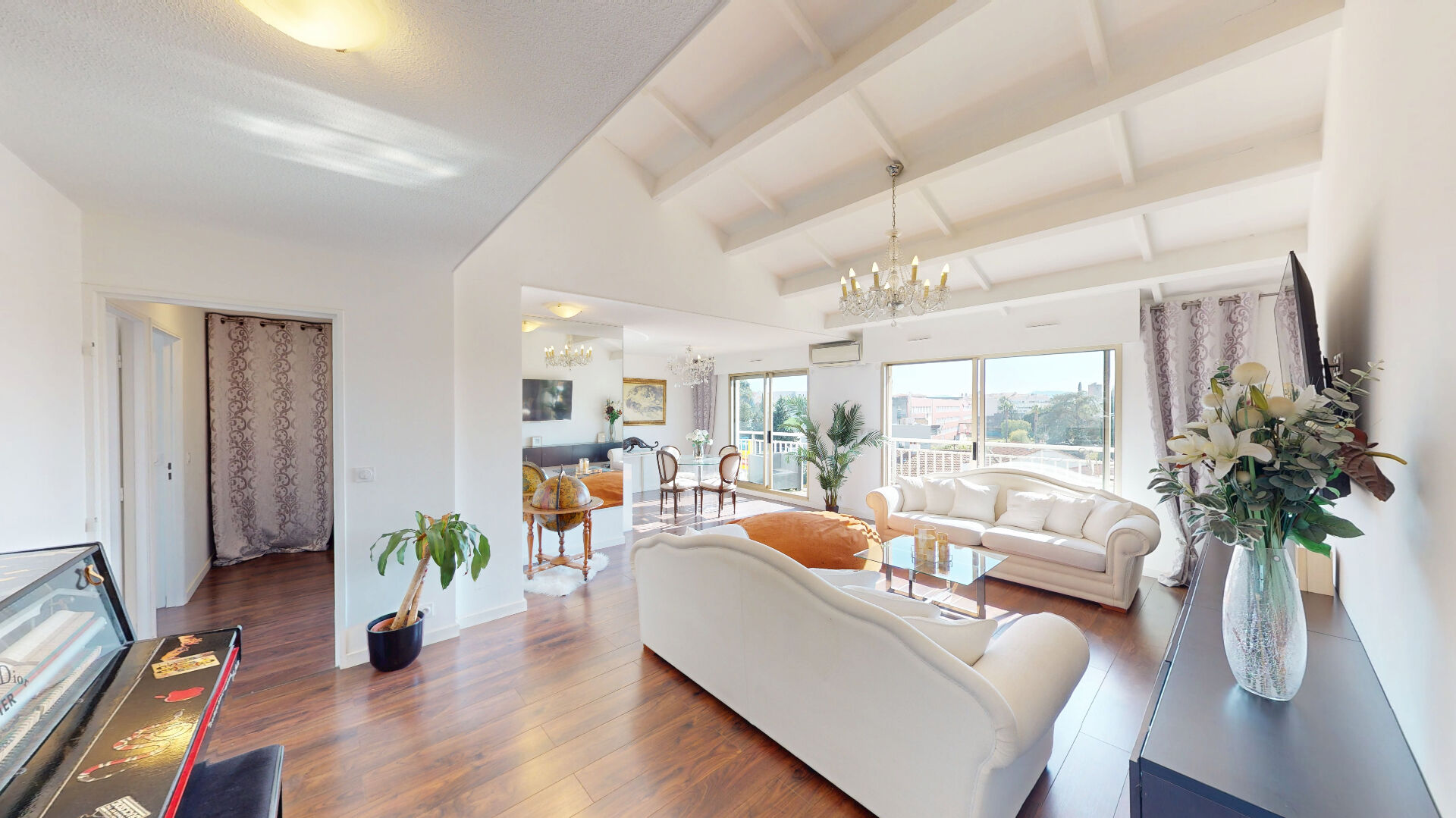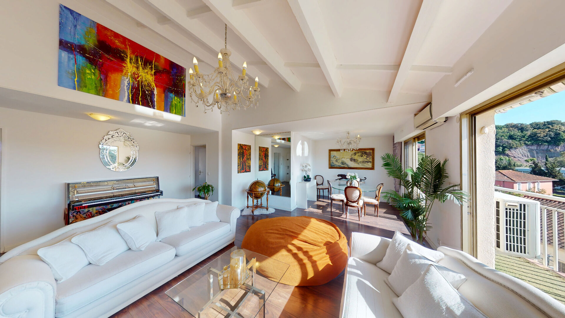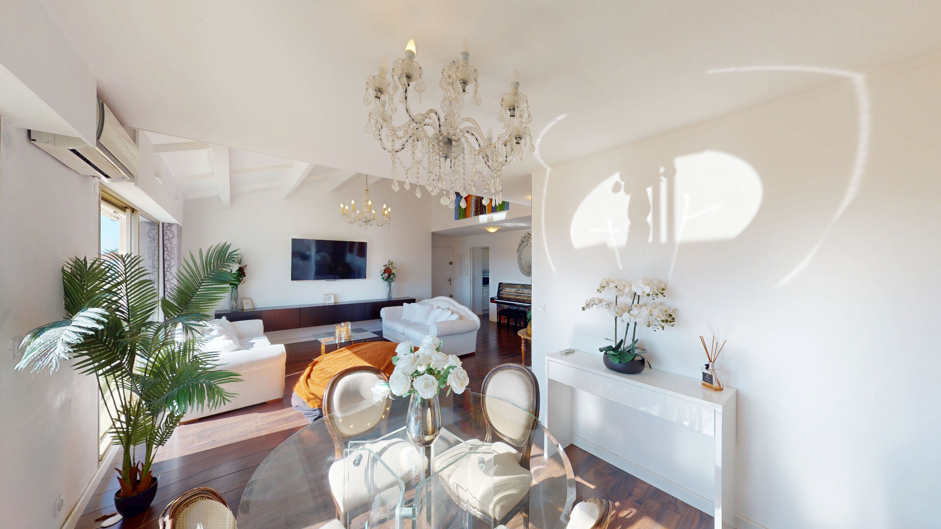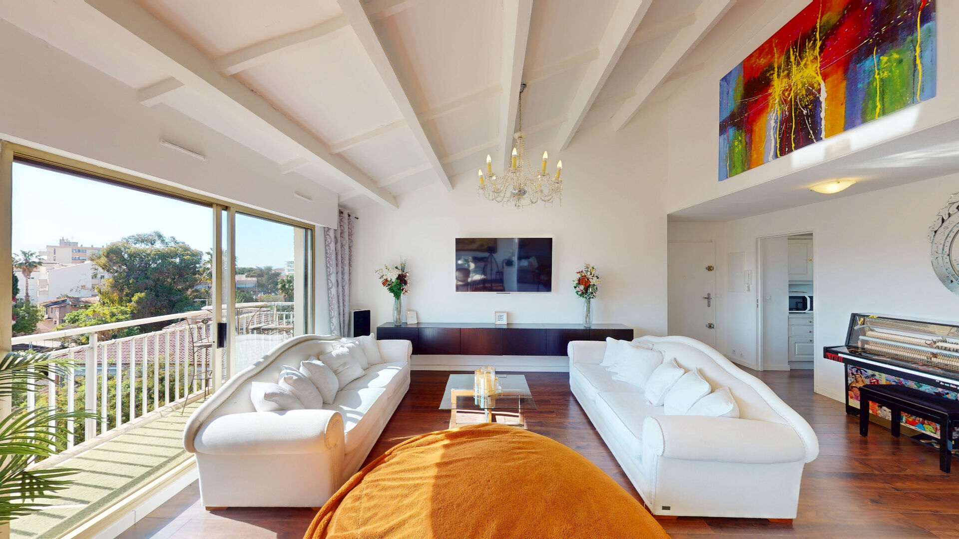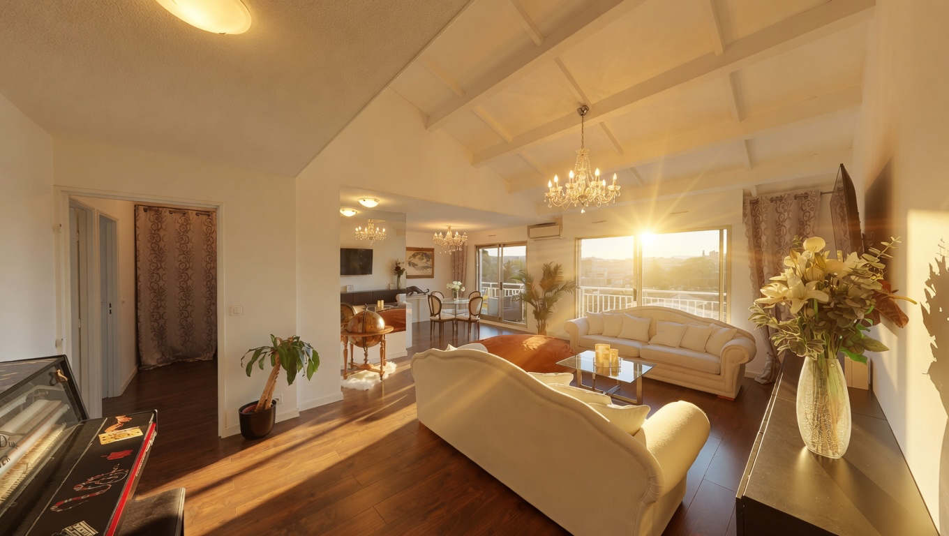 Il se compose d'un magnifique séjour cathédrale de 39 m², très lumineux grâce à son exposition Sud-Ouest et prolongé par un balcon.
